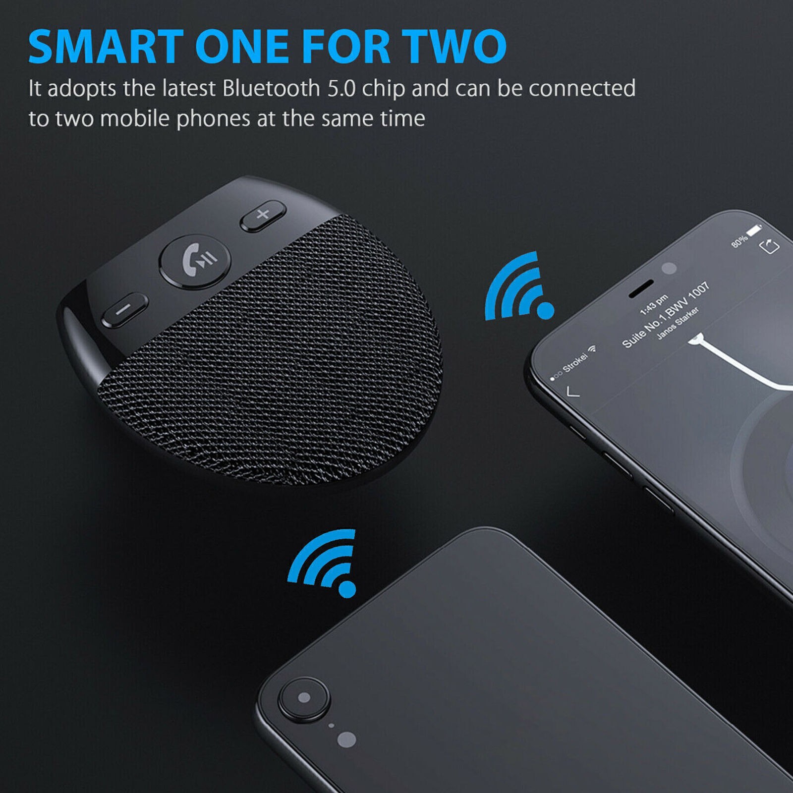Wireless Bluetooth 5.0 Speakerphone Speaker Phone Visor Clip Hands Free Car Kit