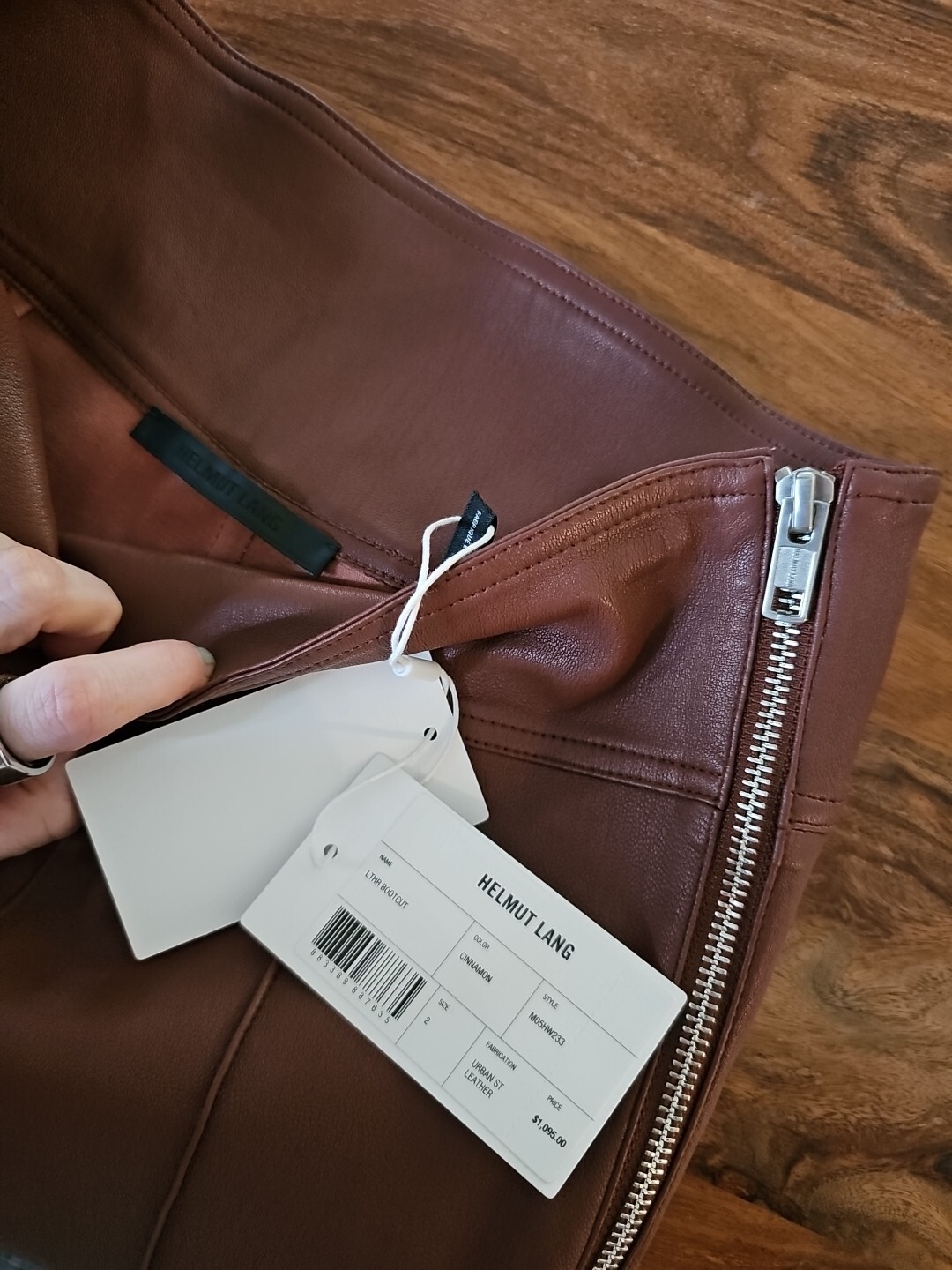 как выглядит HELMUT LANG Cinnamon Brown Leather Bootcut Trouser Stretch Pants 1095, Sz 2 NWT фото