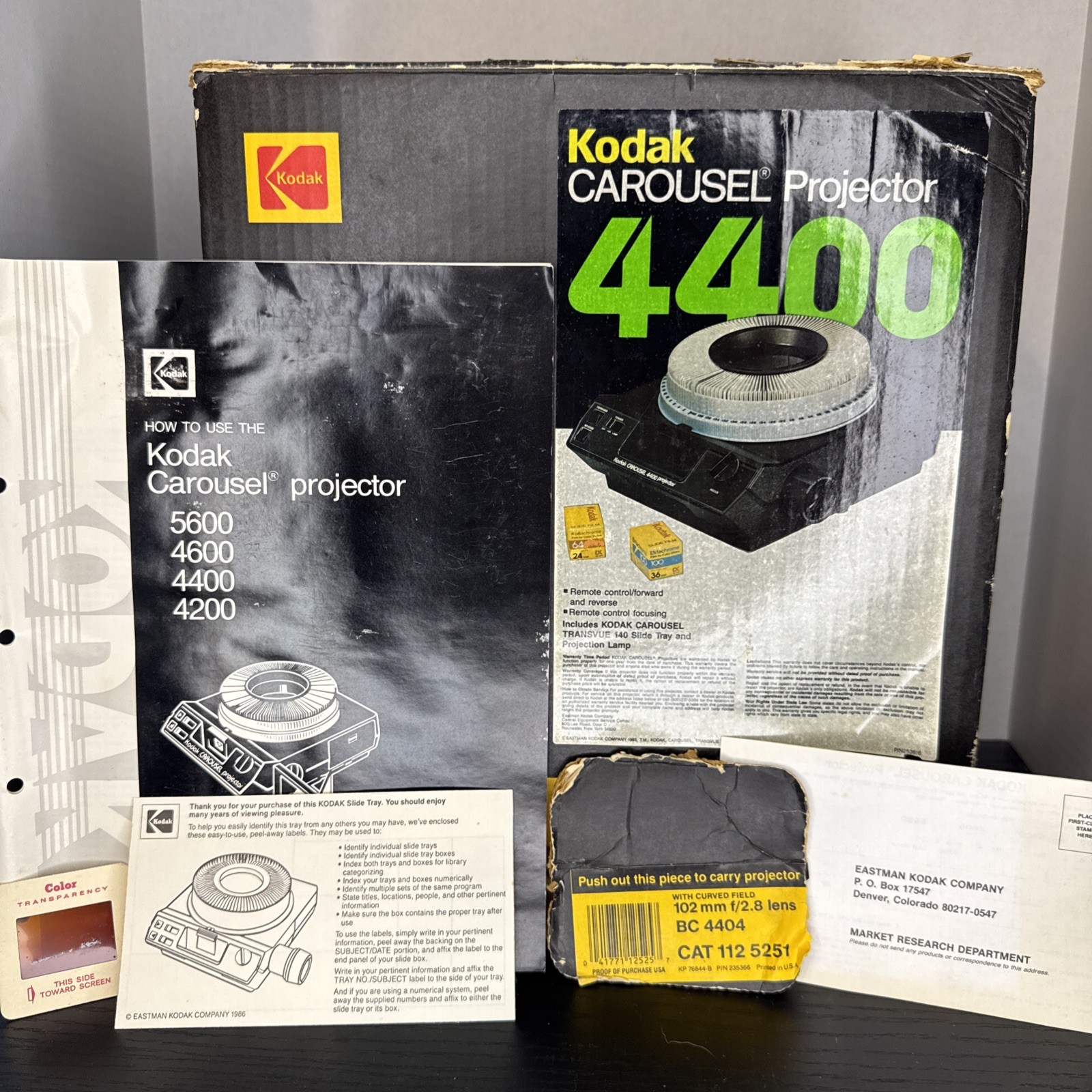 Kodak Carousel 4400 Slide Projector w/ Box Manual Remote Tested Works Vintage