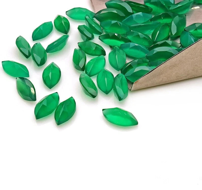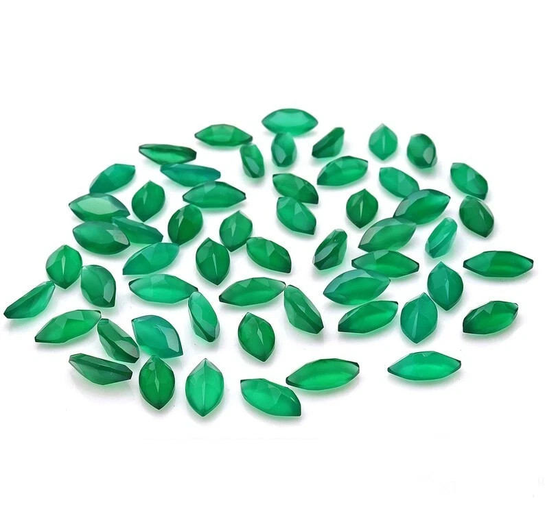 как выглядит AAA Natural Green Onyx Faceted Marquise Shape Loose Gemstone фото