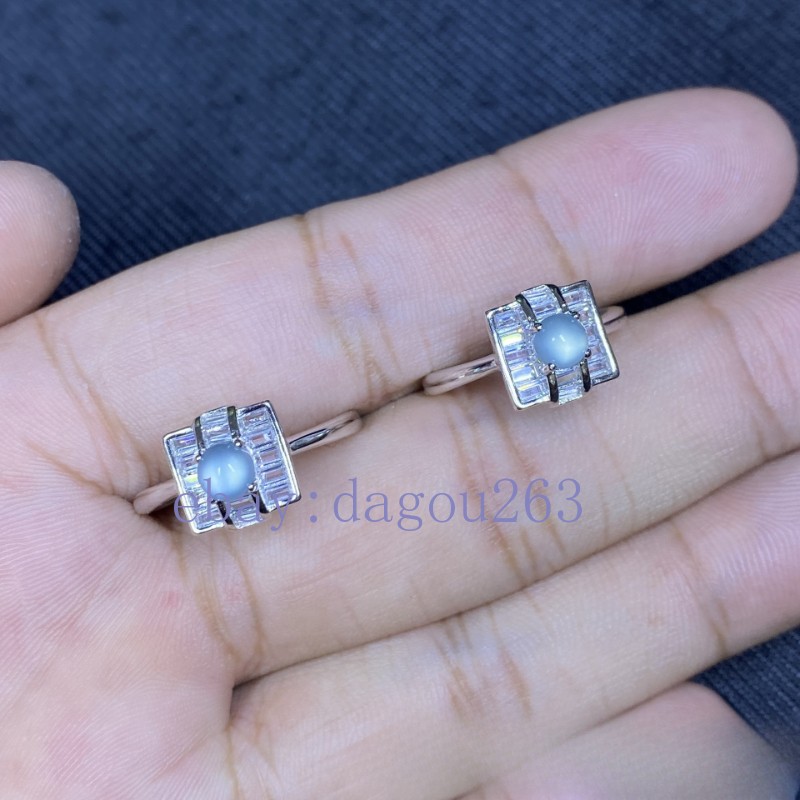 Certified natural A-grade jadeite Blue Water Ball 925 silver inlaid ring