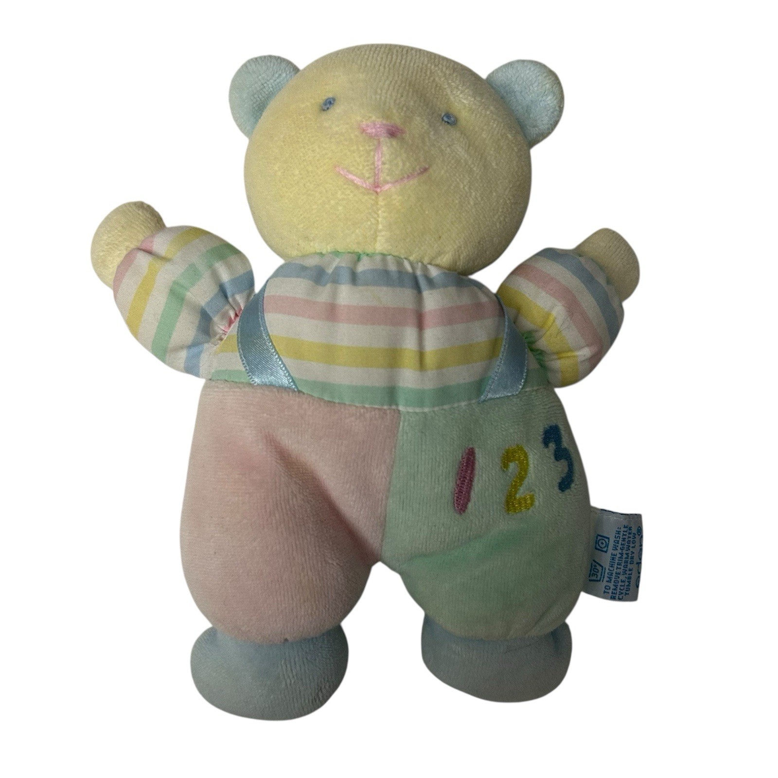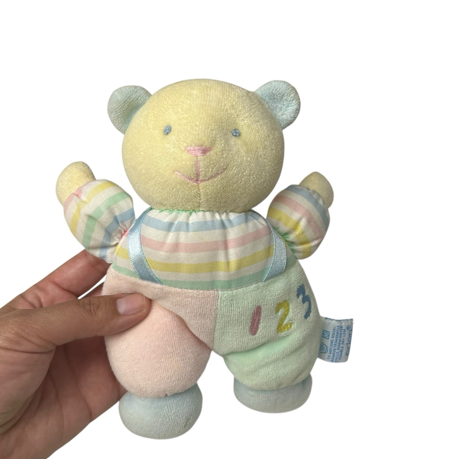 как выглядит Eden Pastel Color Block Velour Teddy Bear Plush Baby Rattle 123 Vintage 7.5 фото