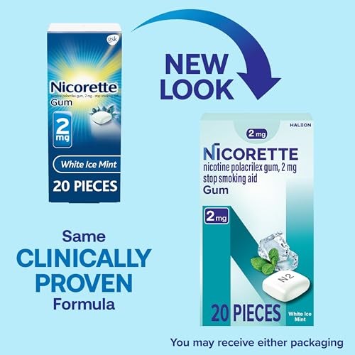 Nicorette Quit Smoking Gum by Nicorette, 2mg, 20 ct, White Ice Mint, EXJAN27