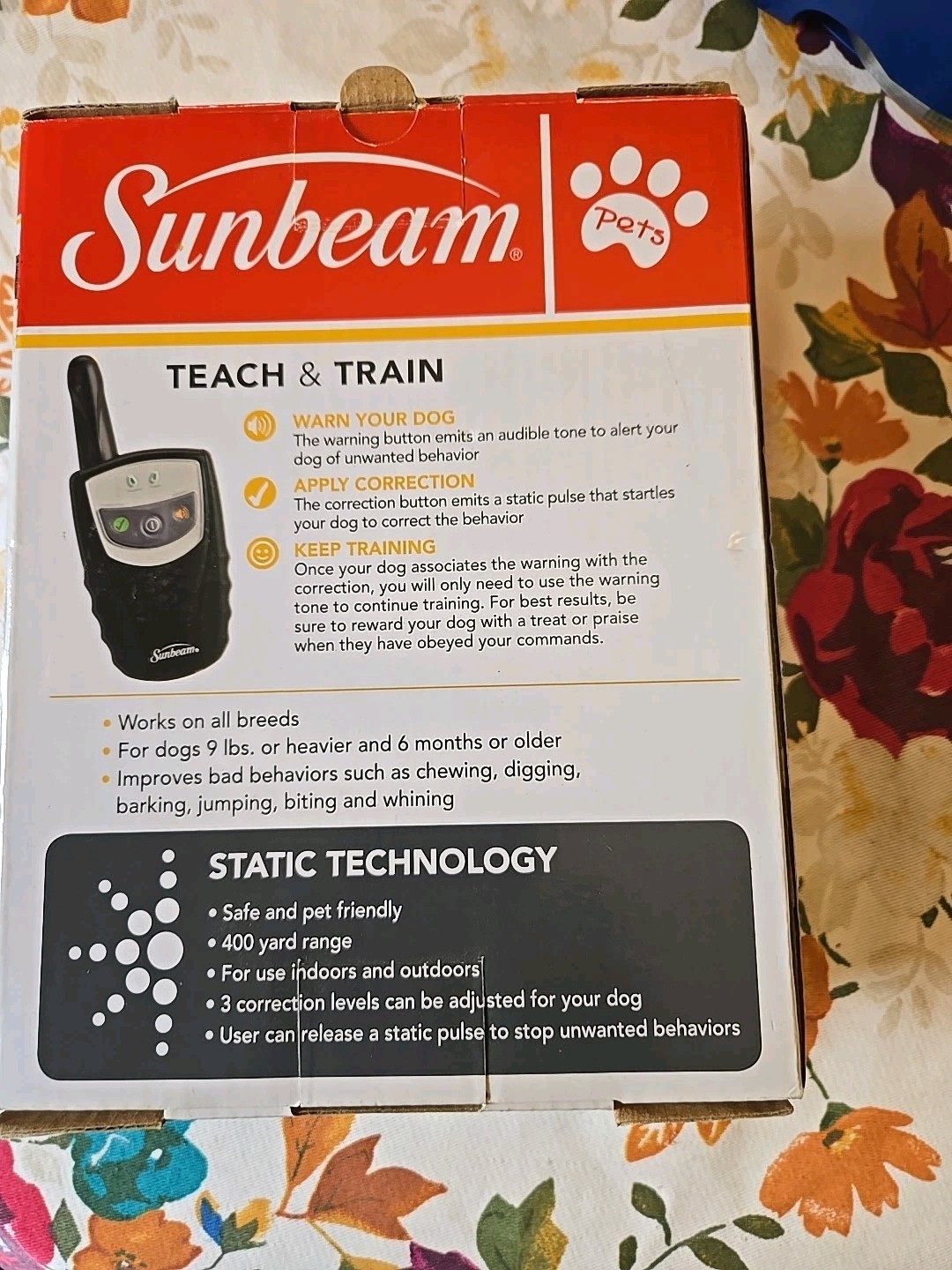 OBN Sunbeam Rechargeable Remote Dog Trainer Static 400 Yard Teach Train