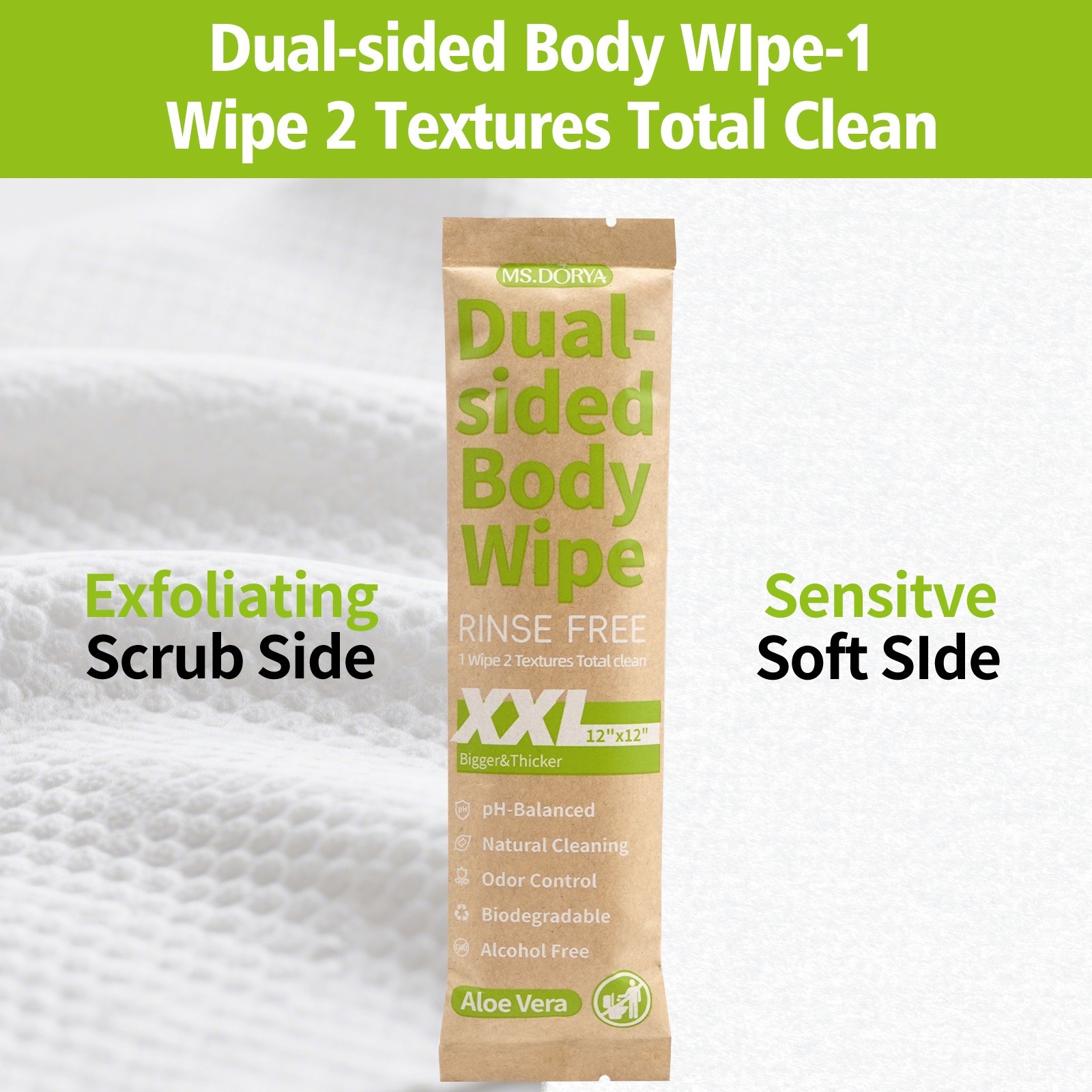 20 PACK -Extra Large Dual-Sided Body Wipes with Aloe Vera for Women's Campin