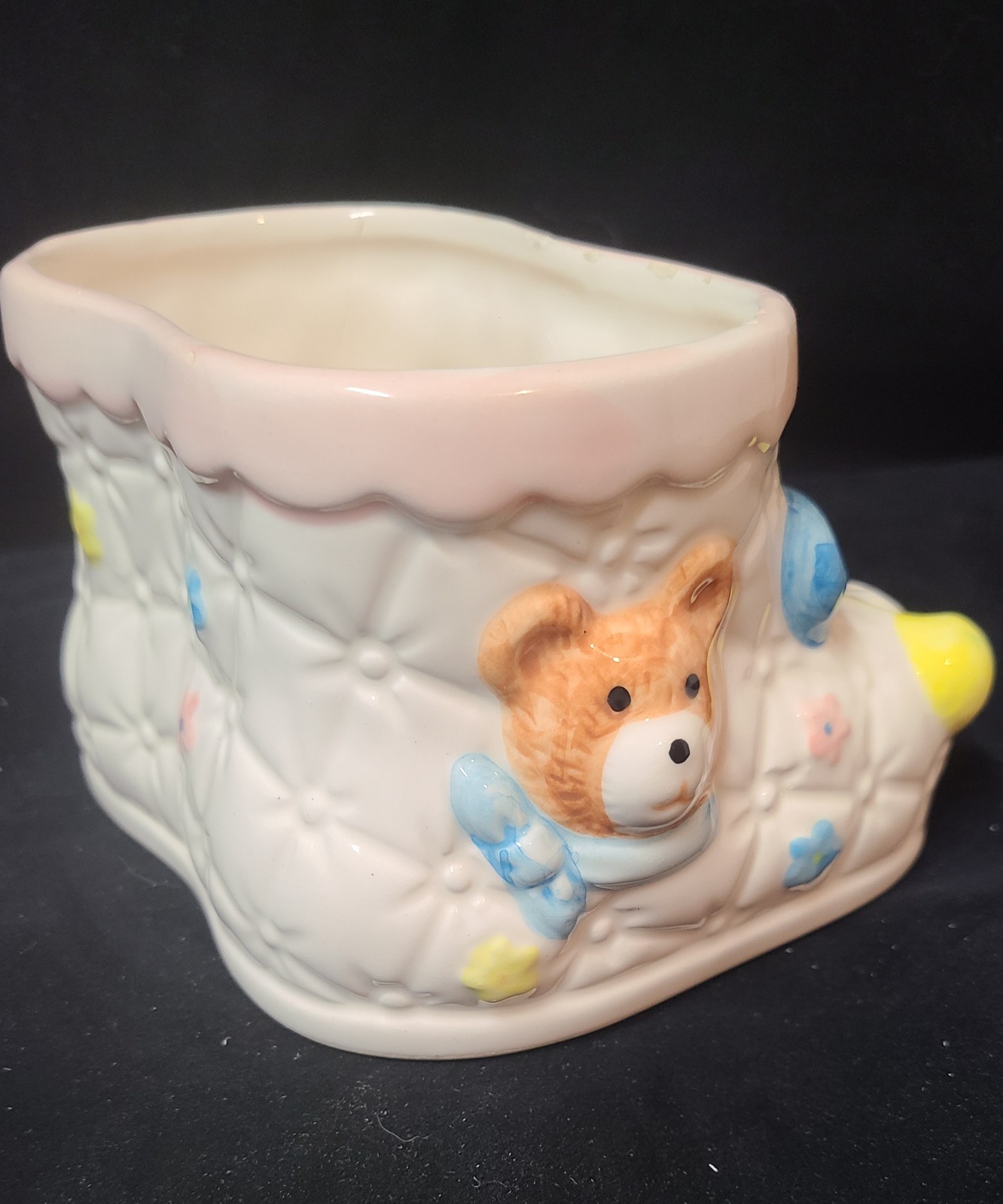 Vintage Ceramic Teddy Bear Baby Booties Planter
