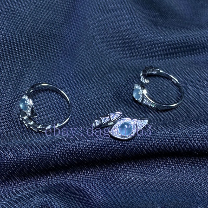 как выглядит Certified natural A-grade jadeite blue water Egg 925silver inlaid snake ring фото