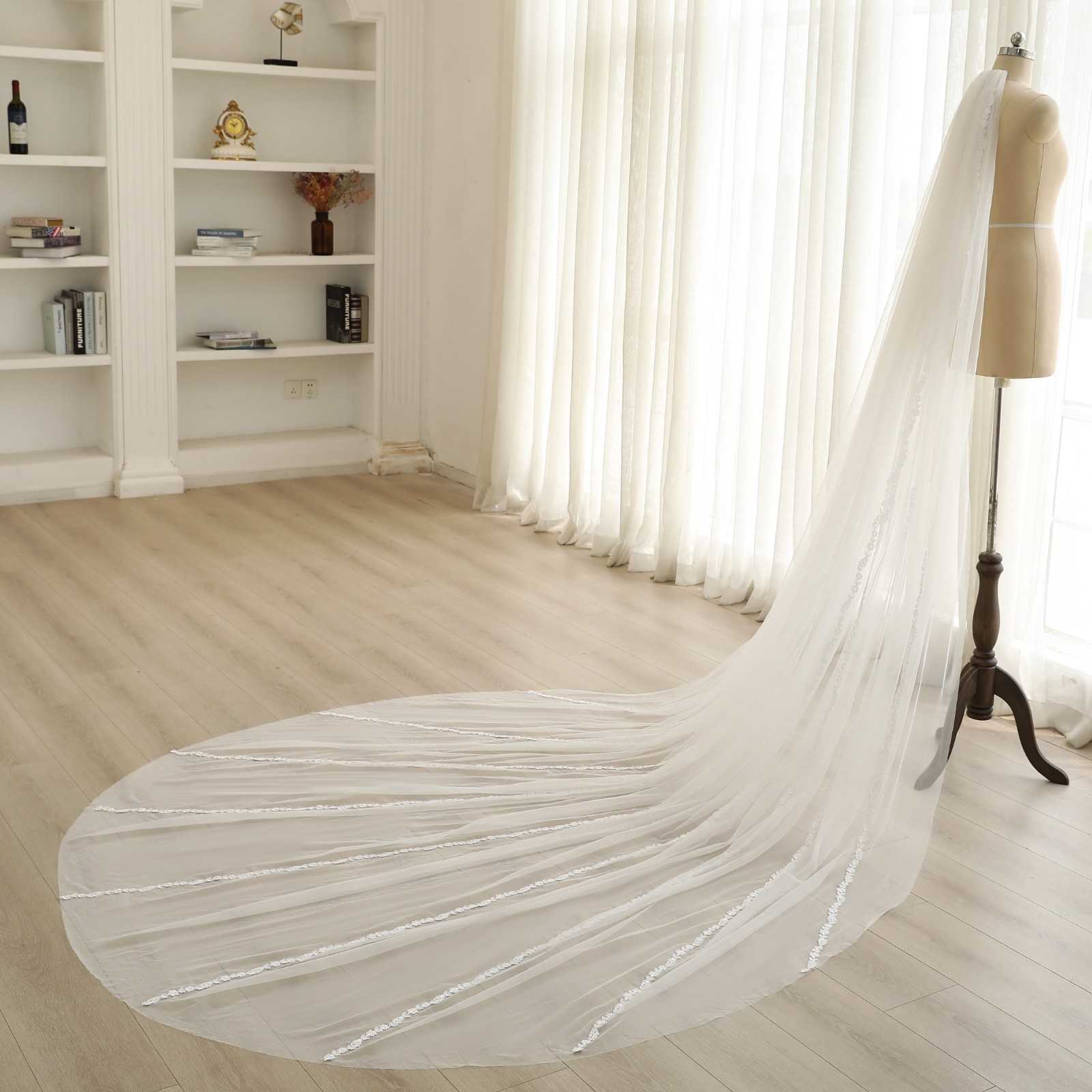 All-Over Floral Vine Lace Veil Head to Hem Botanical Design White Flower Veil
