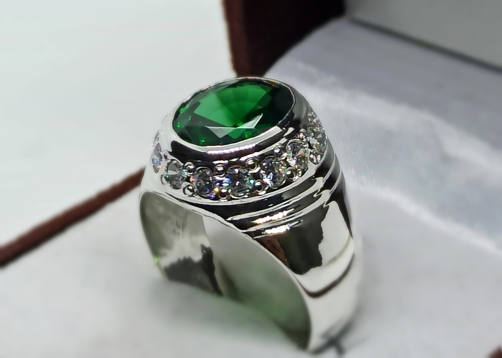 как выглядит 6 Carat Green Created Zircon Sterling Silver 925 Handmade Channel-Set Mens Ring фото