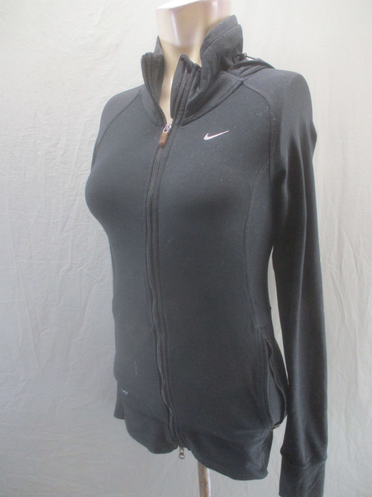 Nike Size XS Womens Blk Hooded Full Zip Long Sleeve Activewear Sports Jacket 646
