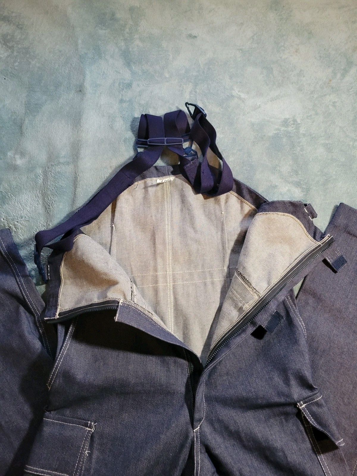 как выглядит Vintage 1986 FRENCH Military Guy Leroy Denim Eork overalls Mens 32 28 Read фото