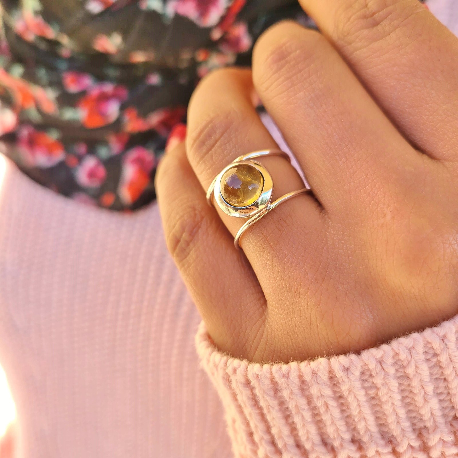 Genuine Citrine Ring 925 Sterling Silver Boho Statement Jewelry for Women