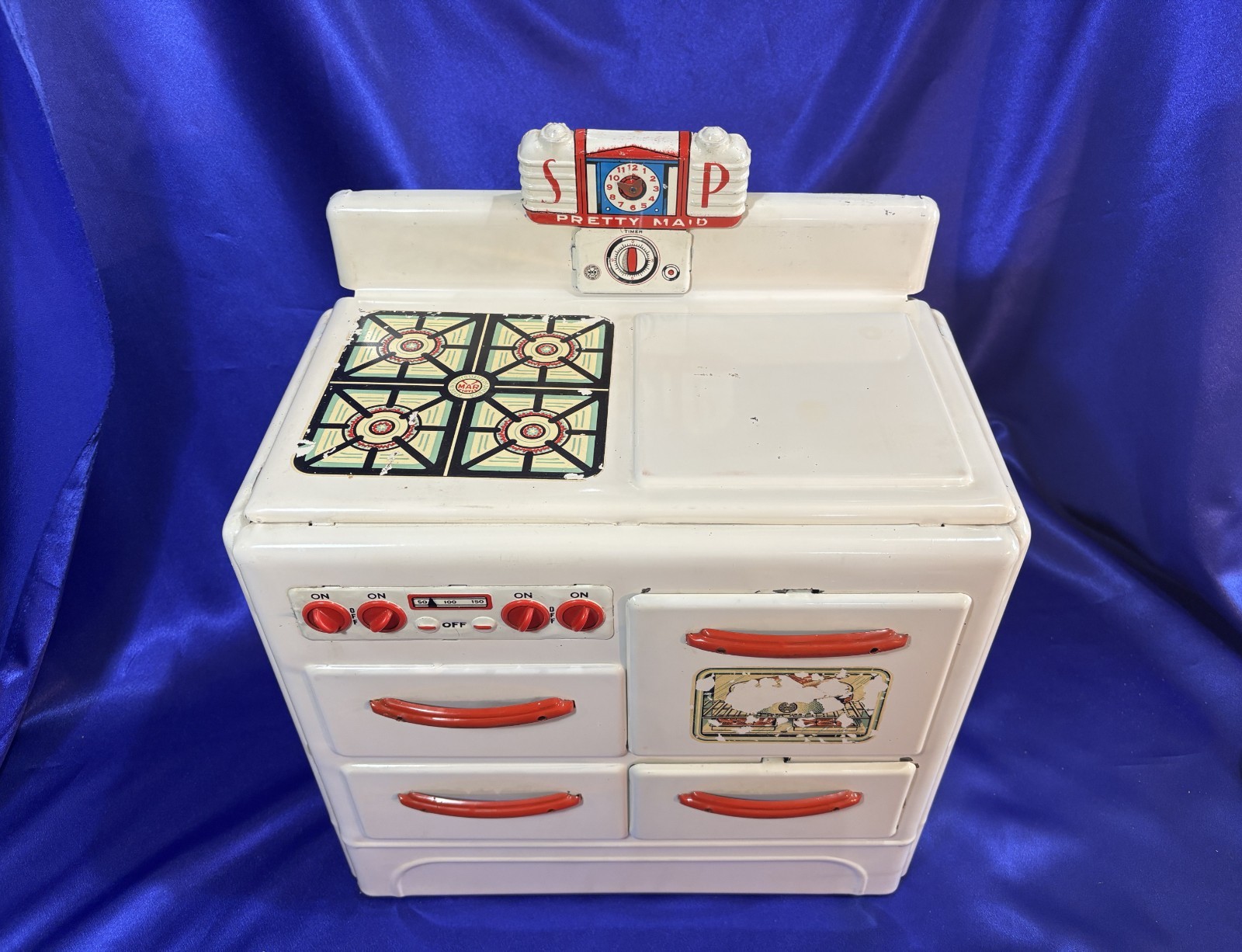 1930's Marx Pretty Maid Child's Toy Oven Kitchen Stove Metal Enamel Tin BEAUTY