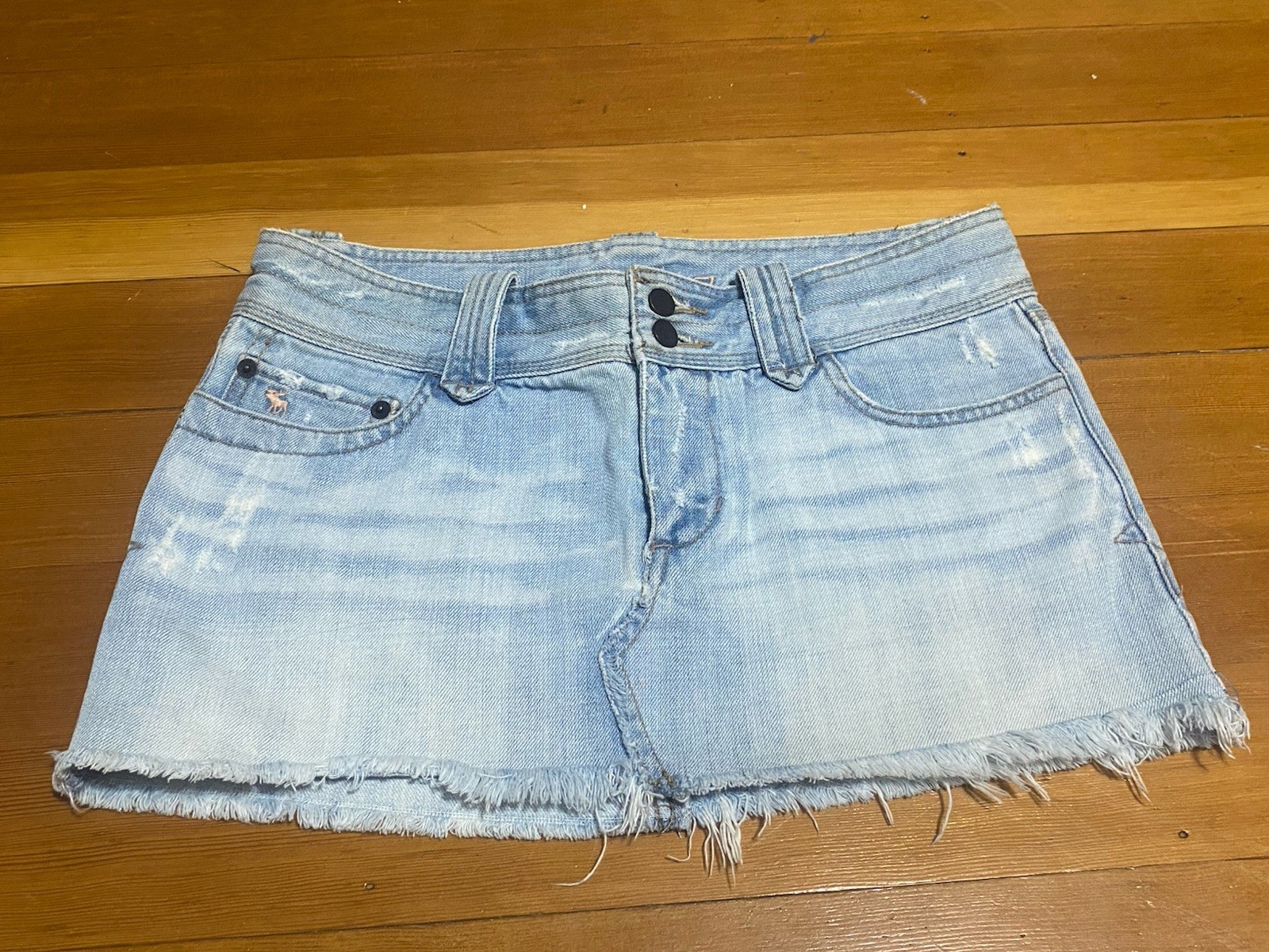 как выглядит Vtg Abercrombie Fitch Denim Sz 2 Mini Micro Fray Skirt 90s Y2K Light Sequins фото