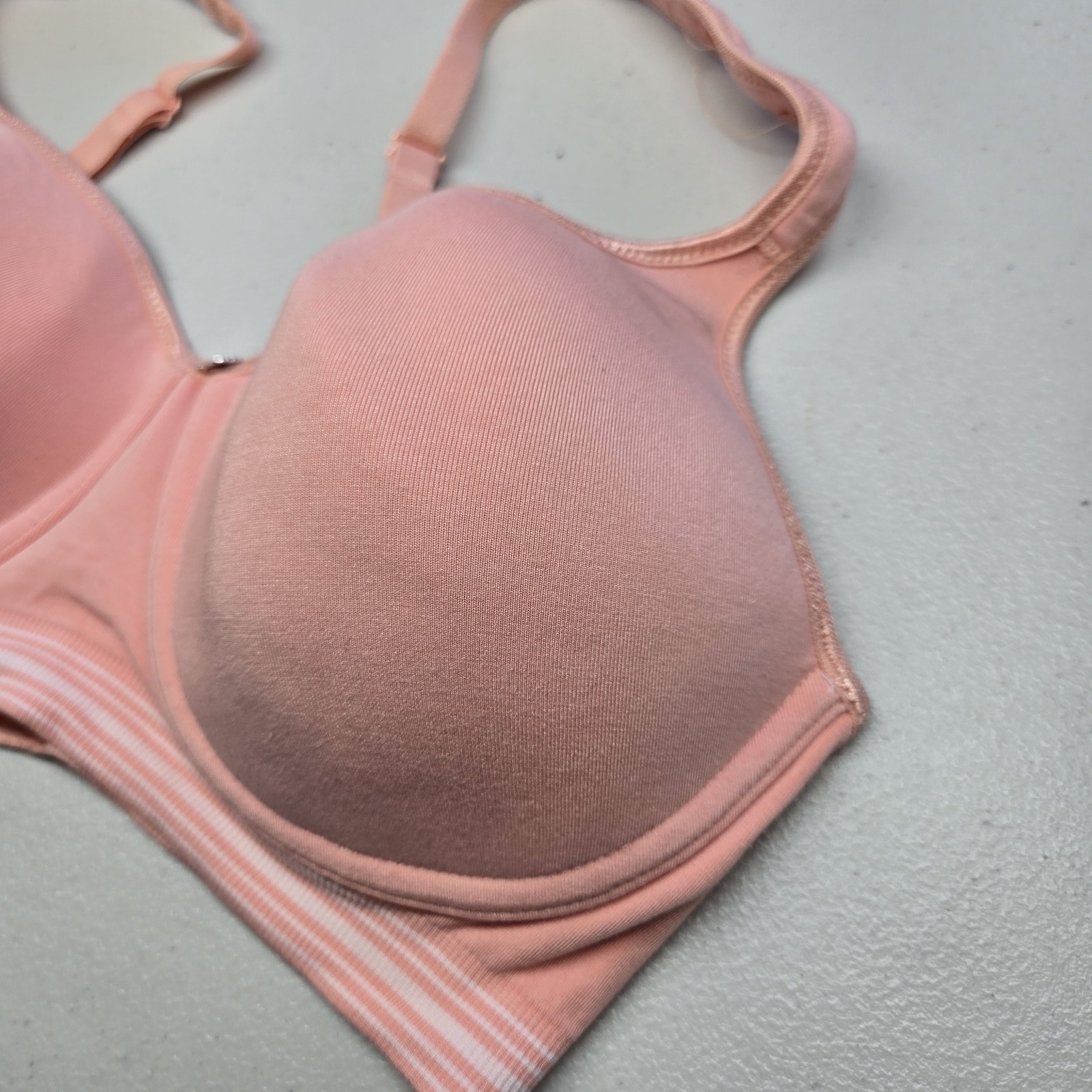 как выглядит Breezies Women Bra 36C Peach T Shirt Wireless Logo Lightly Lined фото
