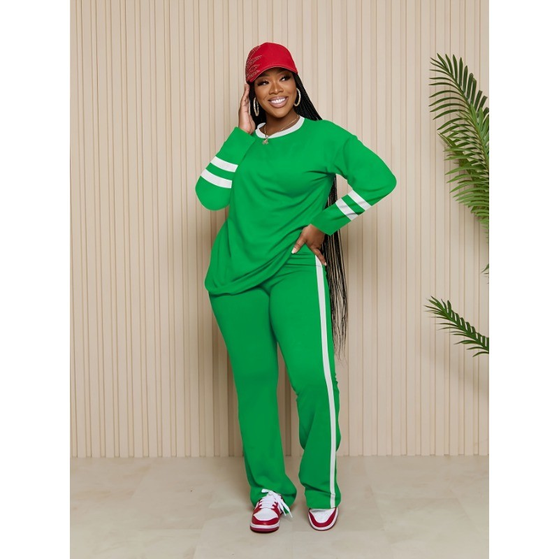Womens 2pcs Outfits Casual Long Sleeve Top Flare Pants Breathable Tracksuit Sets