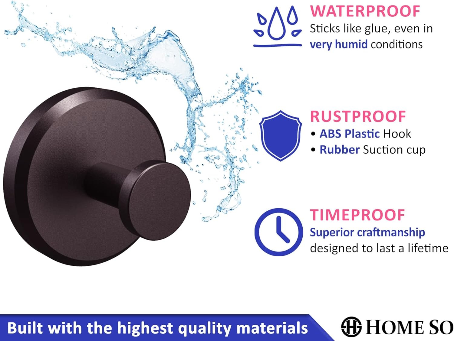 HOME SO Suction Cup Hooks for Shower, Bathroom, Kitchen, Glass Door, Chrome