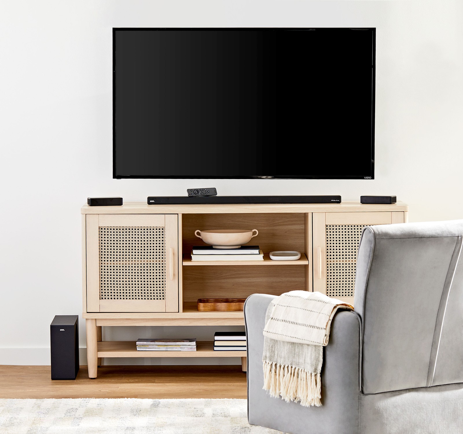 onn. 100135498 5.1 Ultra-Slim Surround Soundbar System with Dolby Atmos, Black,