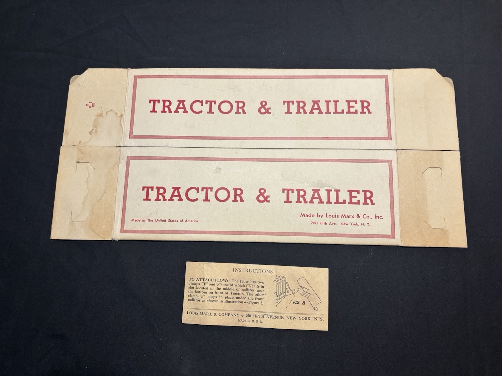 ORIGINAL MARX TRACTOR TRAILER PLOW SET BOX ONLY WITH ORIGINAL DIRECTIONS