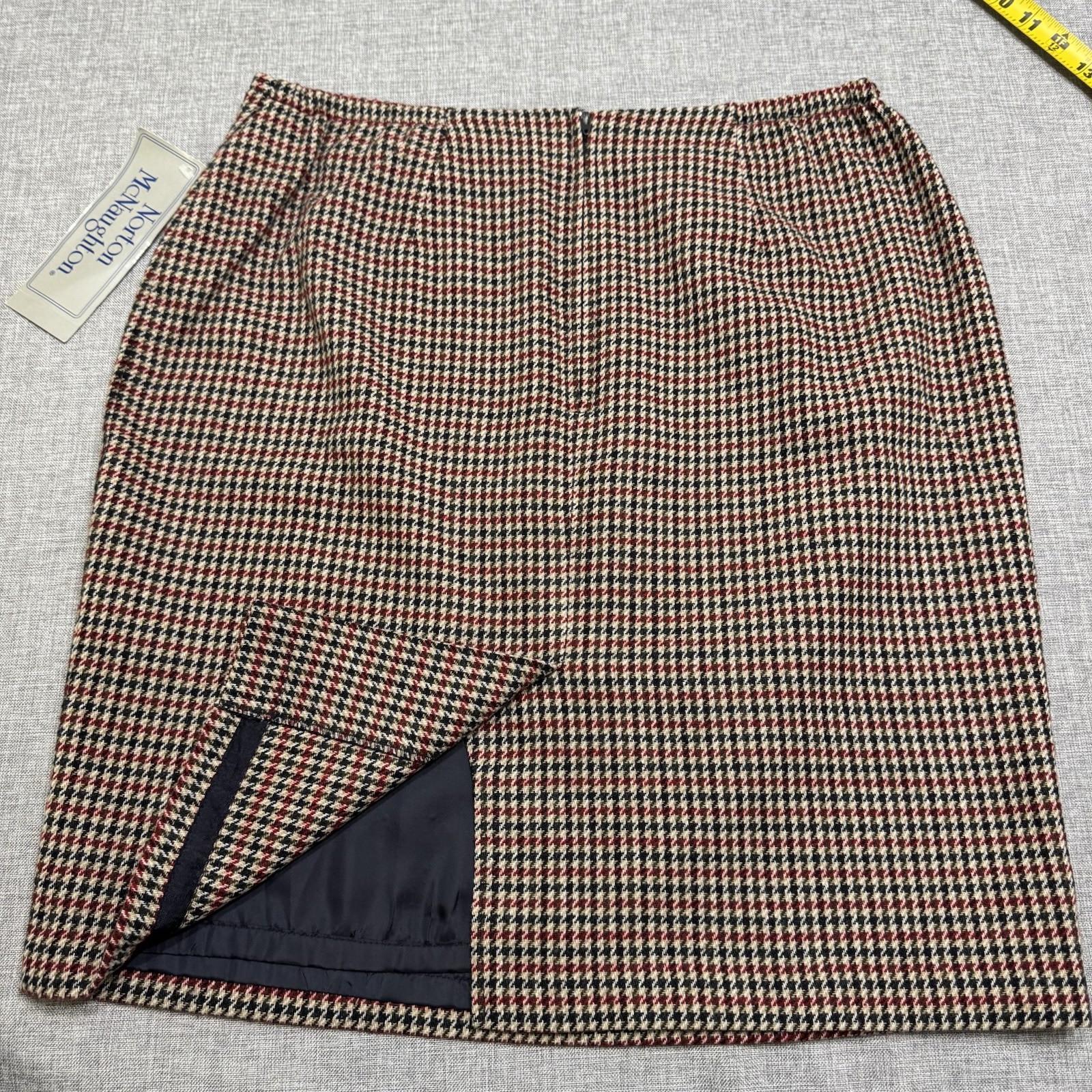 как выглядит Vintage 90s Houndstooth Skirt 16 Wool Blend Multi Y2k Career Academia Preppy фото