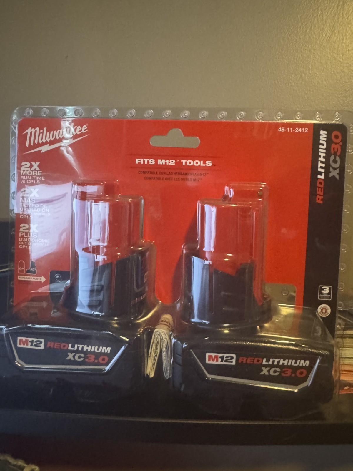 Milwaukee M12 48-11-2412 12 Volt 3.0 AH XC Red Lithium Batteries 2 Pack