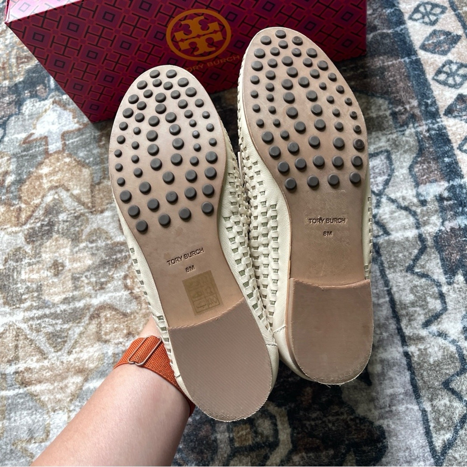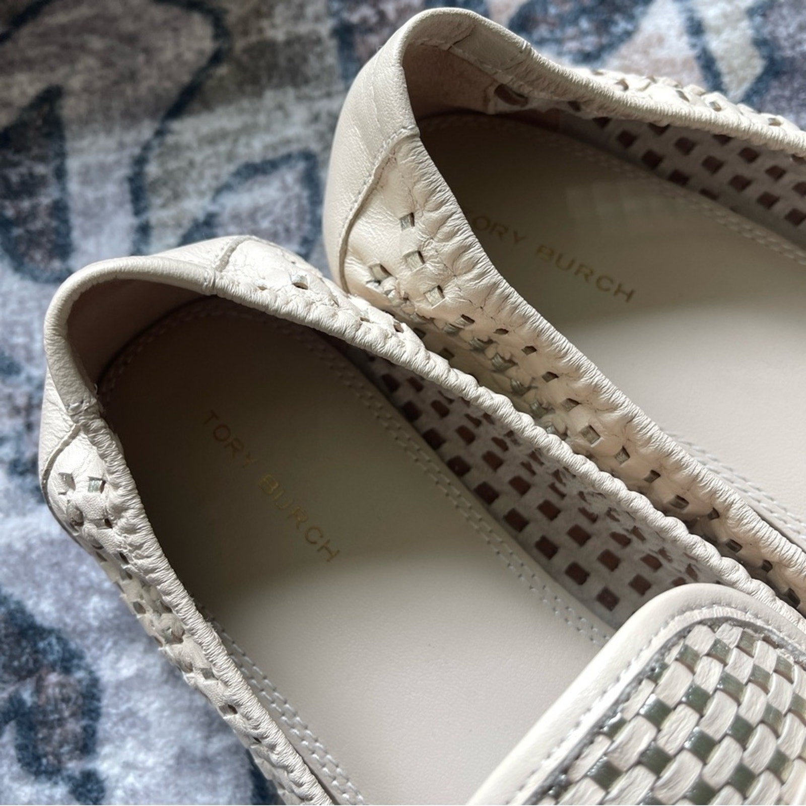как выглядит NIB Tory Burch Woven Ballet Loafers Brie Metallic Flats Spark Gold Shoes 8 фото
