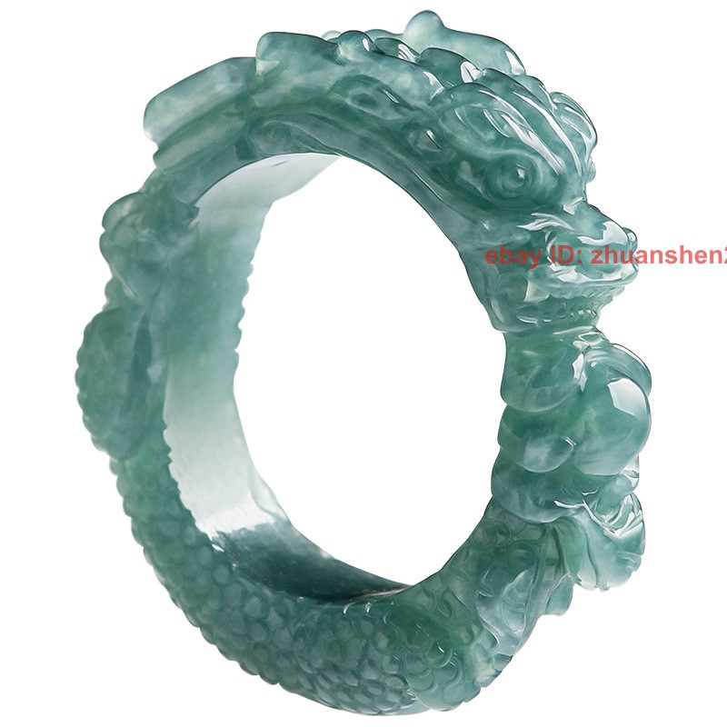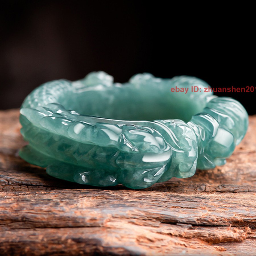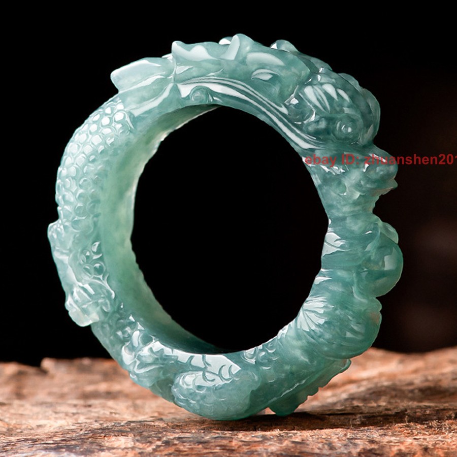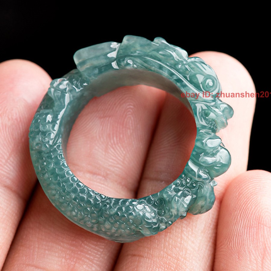 Certified Green Burma Natural Grade A Jade jadeite Hand Carved Dragon Lucky Ring