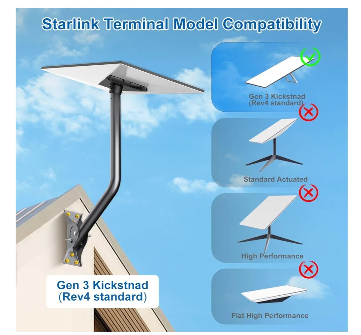 Gen 3 Mount for Starlink, Adjustable Wall /Roof Mounting Kit Compatible with V3