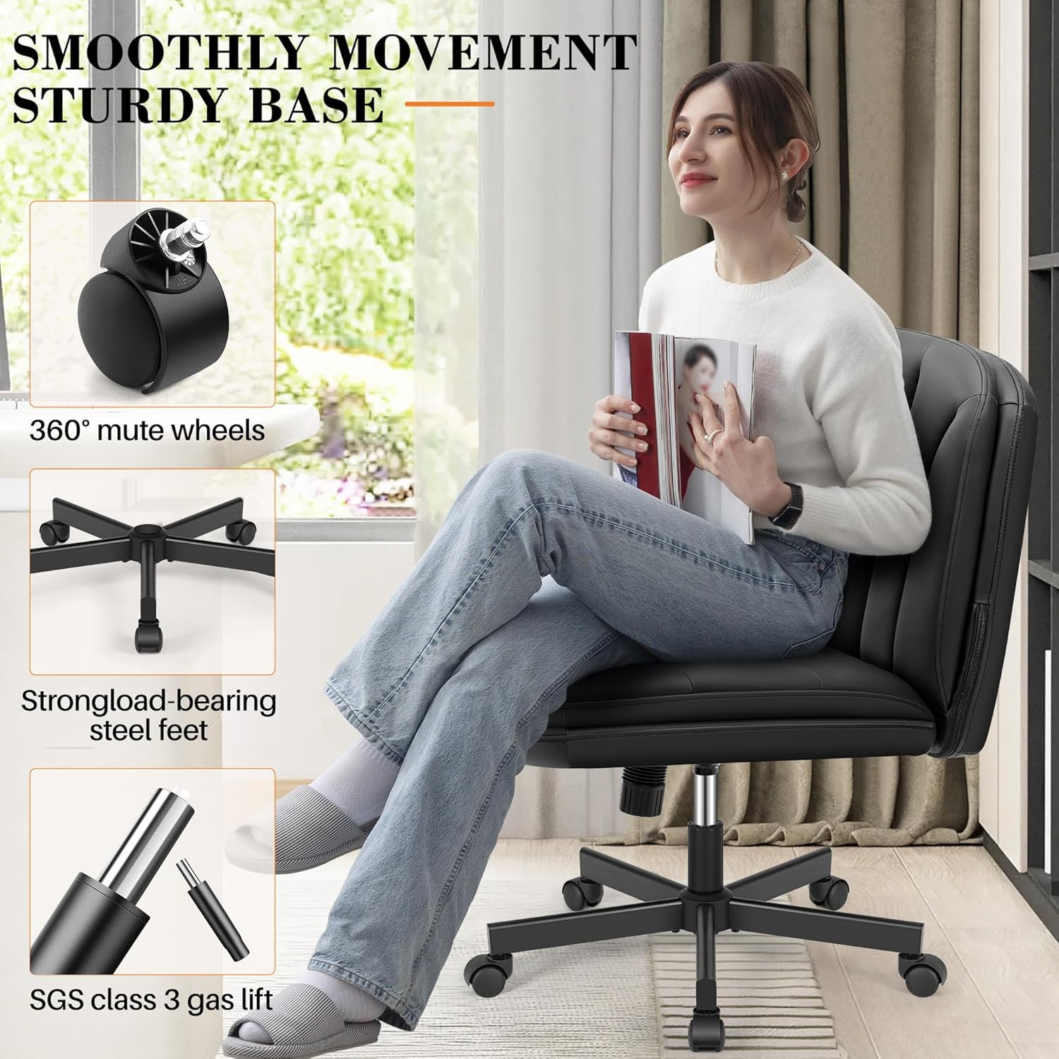 как выглядит Criss Cross Swivel Chair with Wheels, Adjustable PU Leather Office Chair, Black фото