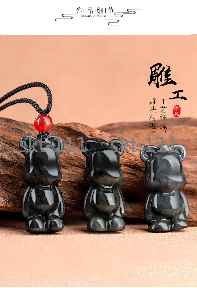 как выглядит Certified Natural Grade A Burma Jadeite Black Jade Black Bear Pendant AAA фото