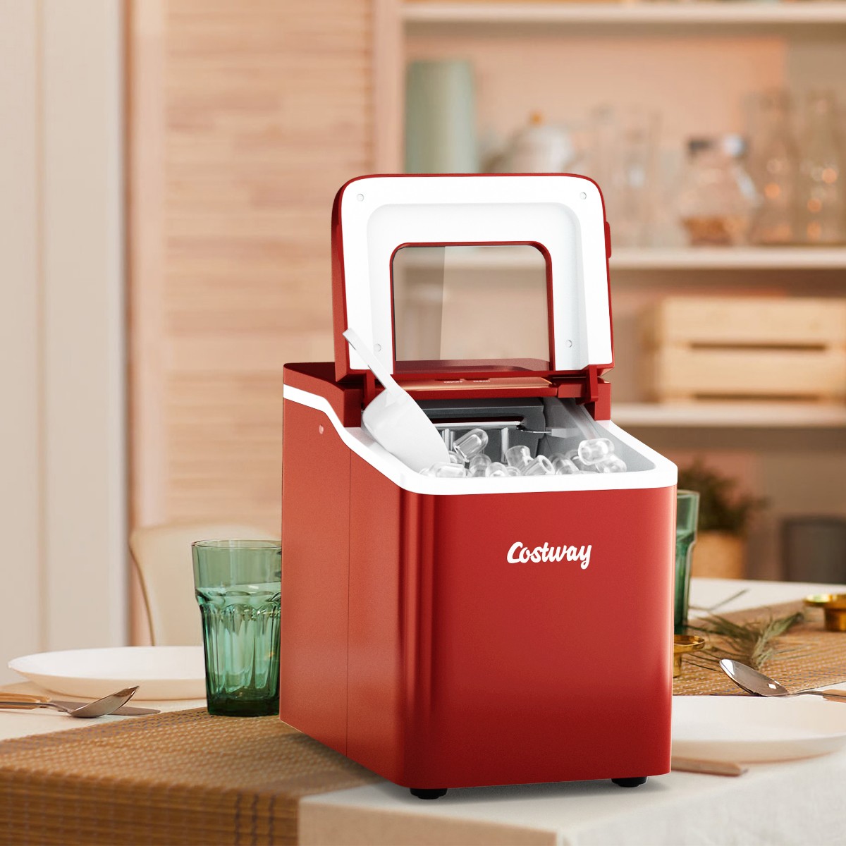 Compact Ice Cube Maker 26Lbs/24H Self-cleaning w/ Scoop Red