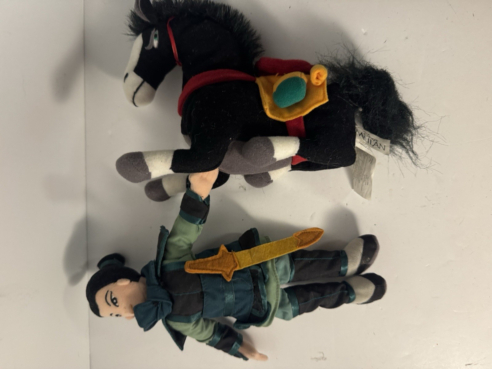 • Vintage Disney Store Mulan Khan Warrior Horse Bean Bag Plush Dolls Lot Of 2