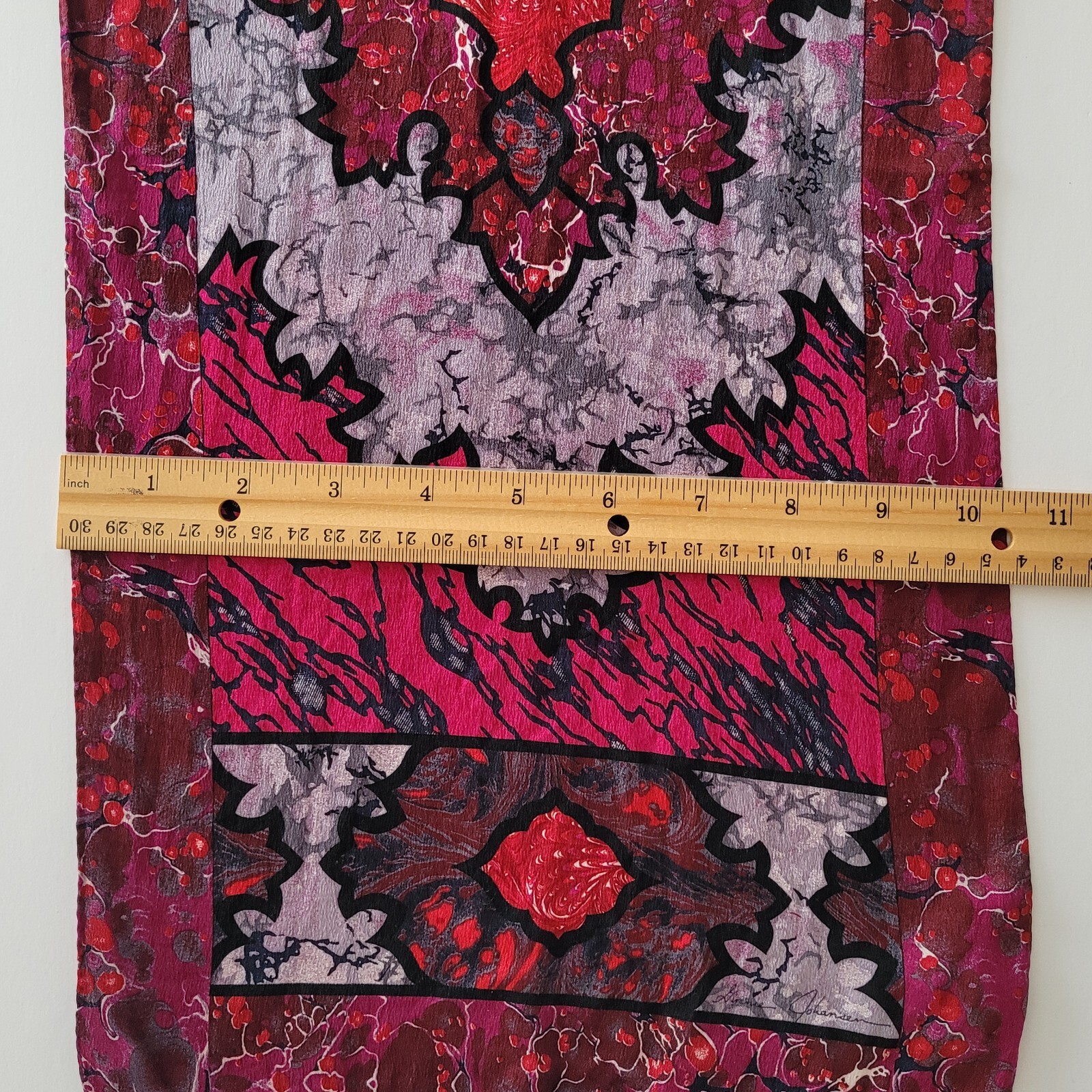 как выглядит Vtg 80s Ginnie Johansen 100 Silk Scarf 57x10" Japan Pink Red Grey Swirl Marbled фото