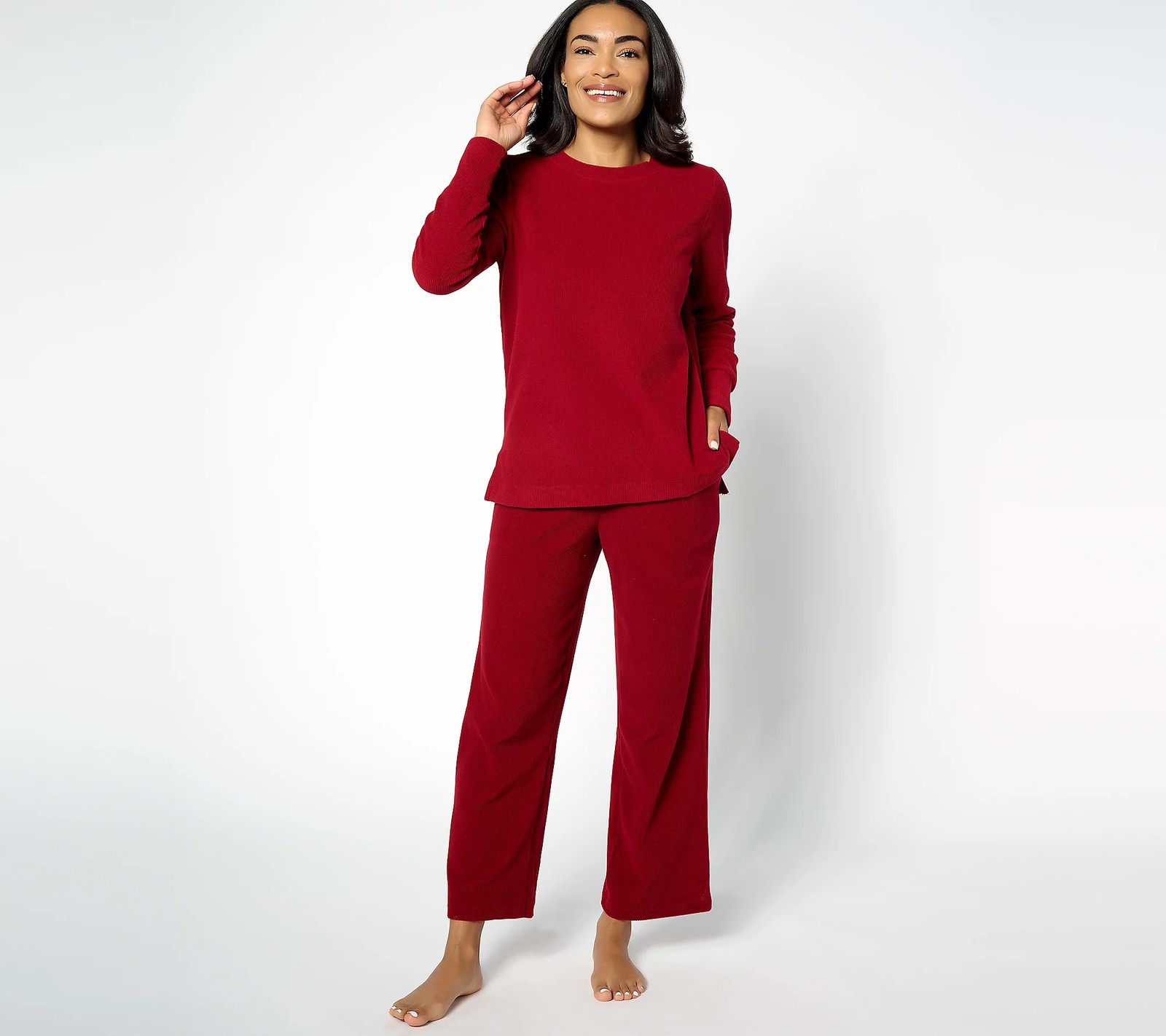 как выглядит Cuddl Duds Ribbed Fleece Wide Leg Lounge Pants Rhubarb S New фото