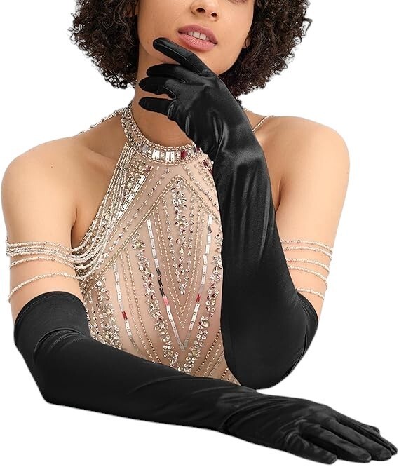 как выглядит Lot of 24 Pairs Adult 19" Gloves 12-WHITE 12-BLACK Above Elbow Dance Costume фото