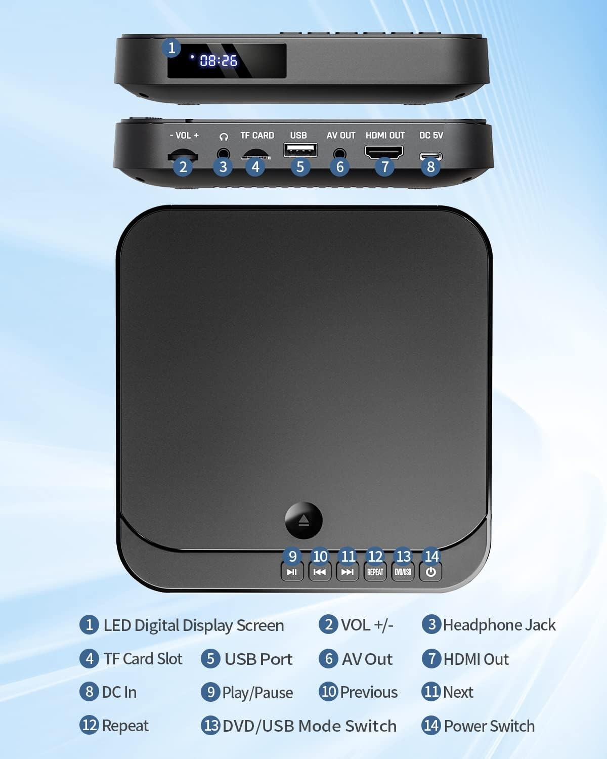 как выглядит Mini DVD Player HDMI, DESOBRY 1080P HD Small Compact DVD Player for Smart TV фото