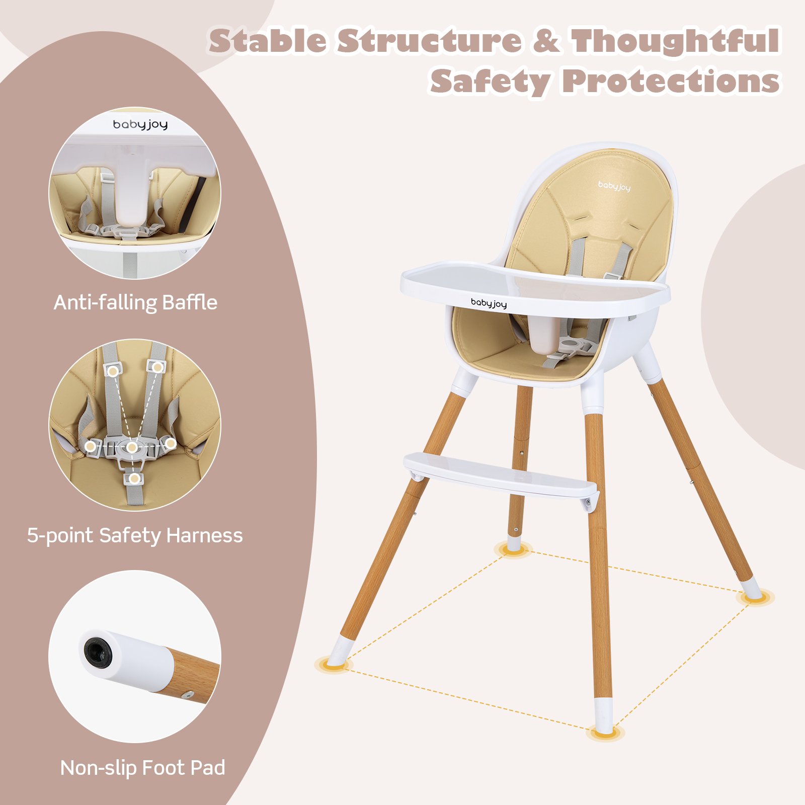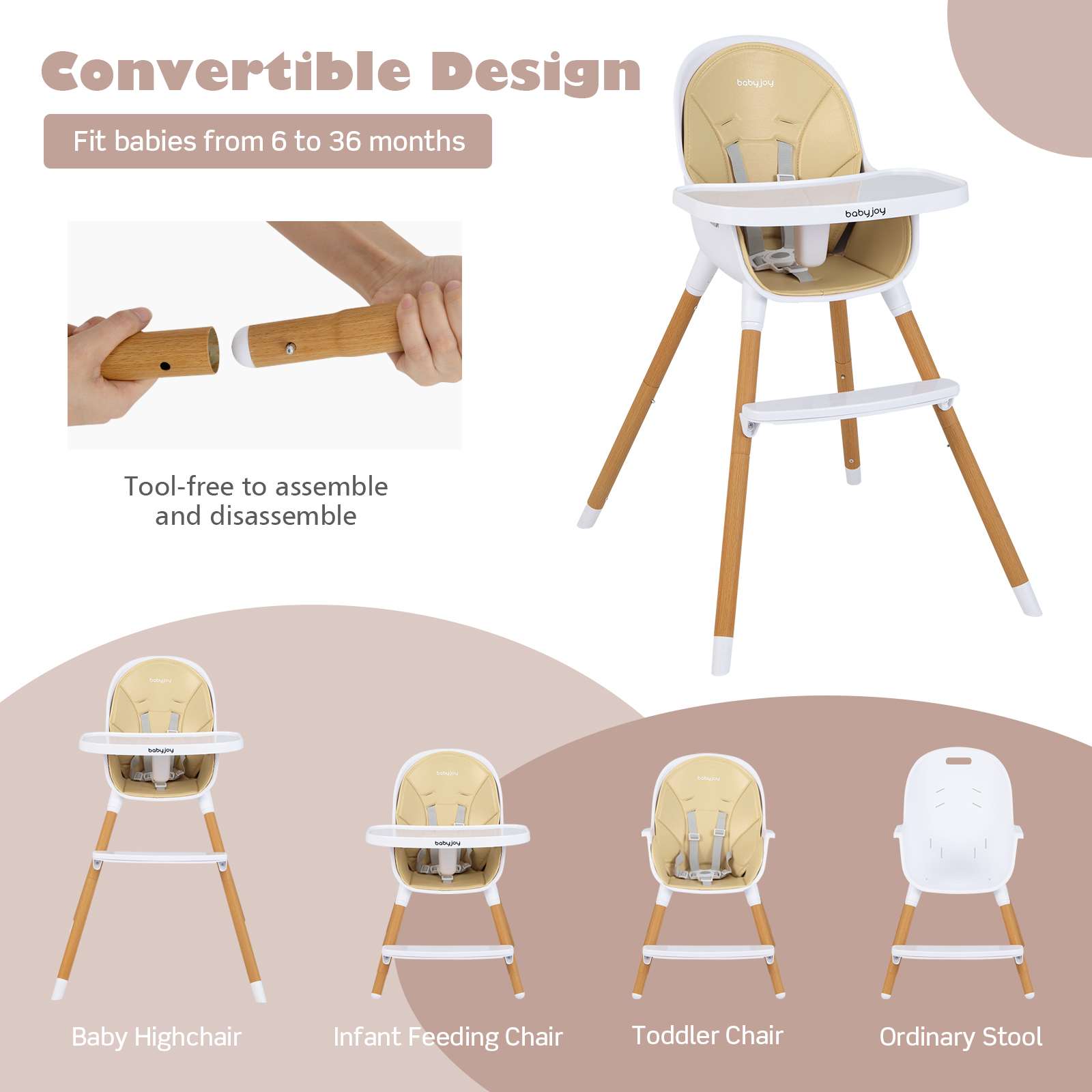 4-in-1 Infant Feeding Chair Convertible High Baby Chair with Adjustable Tray