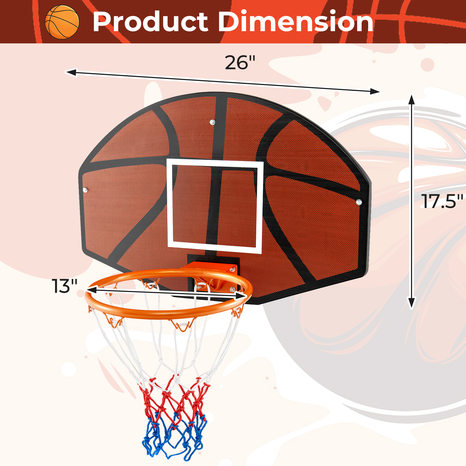 Wall Mounted 26 Basketball Hoop Set w/Shatter-proof Backboard Indoor Toy Gift