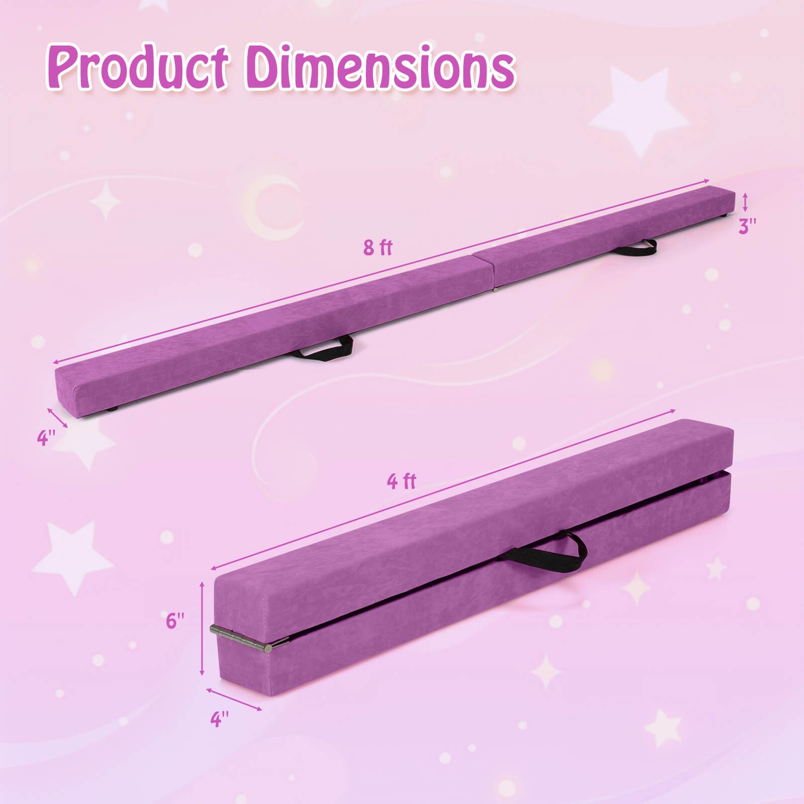 8 FT Folding Gymnastic Beam w/Anti-slip Base Pine Wood Frame Carrying Handle