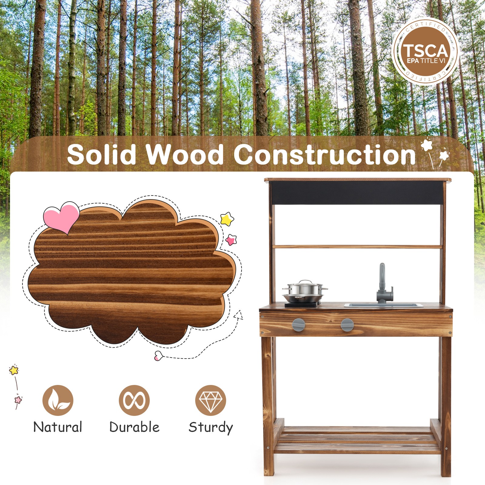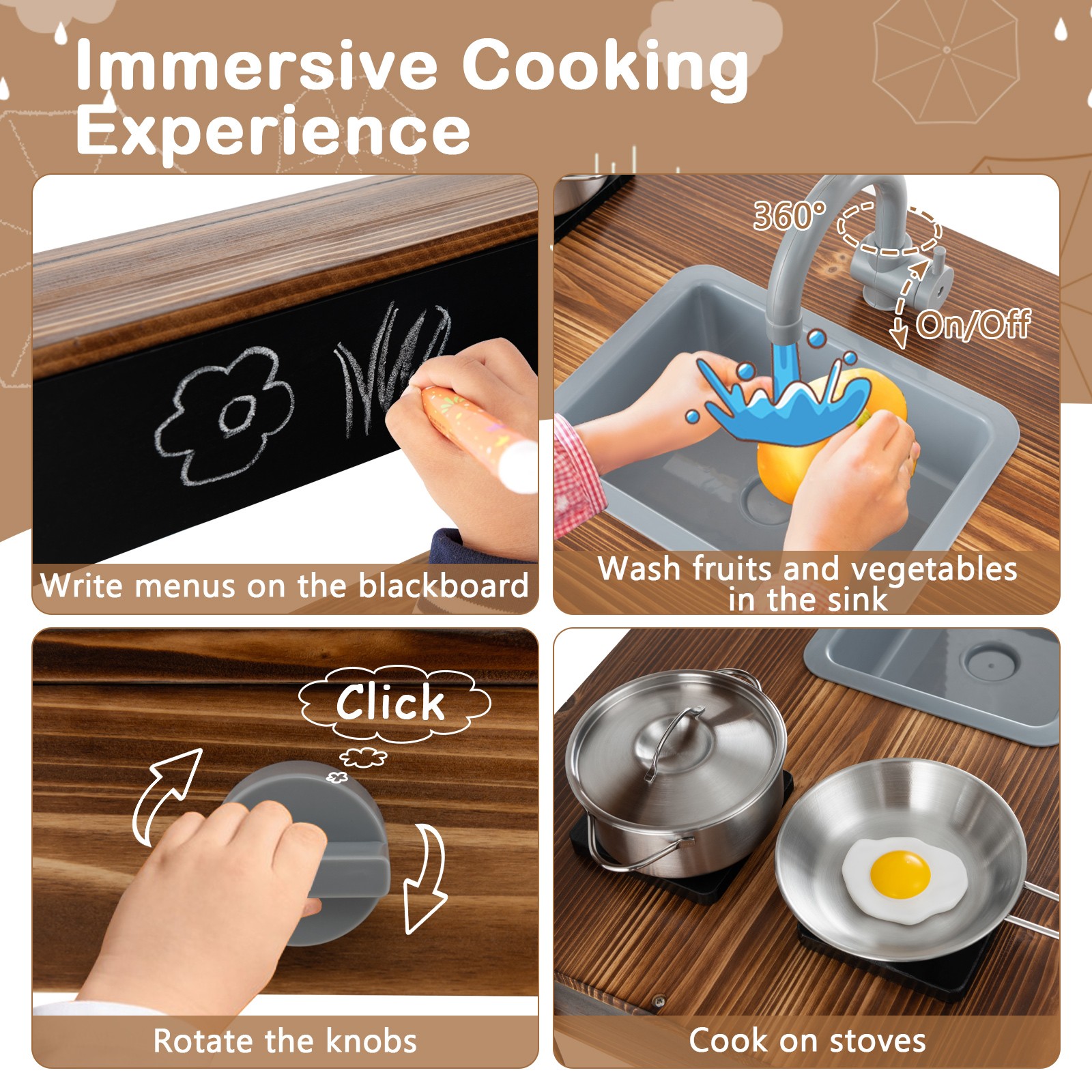 Kids Mud Kitchen w/Rotary Knobs Cookware Blackboard Stoves Removable Sink