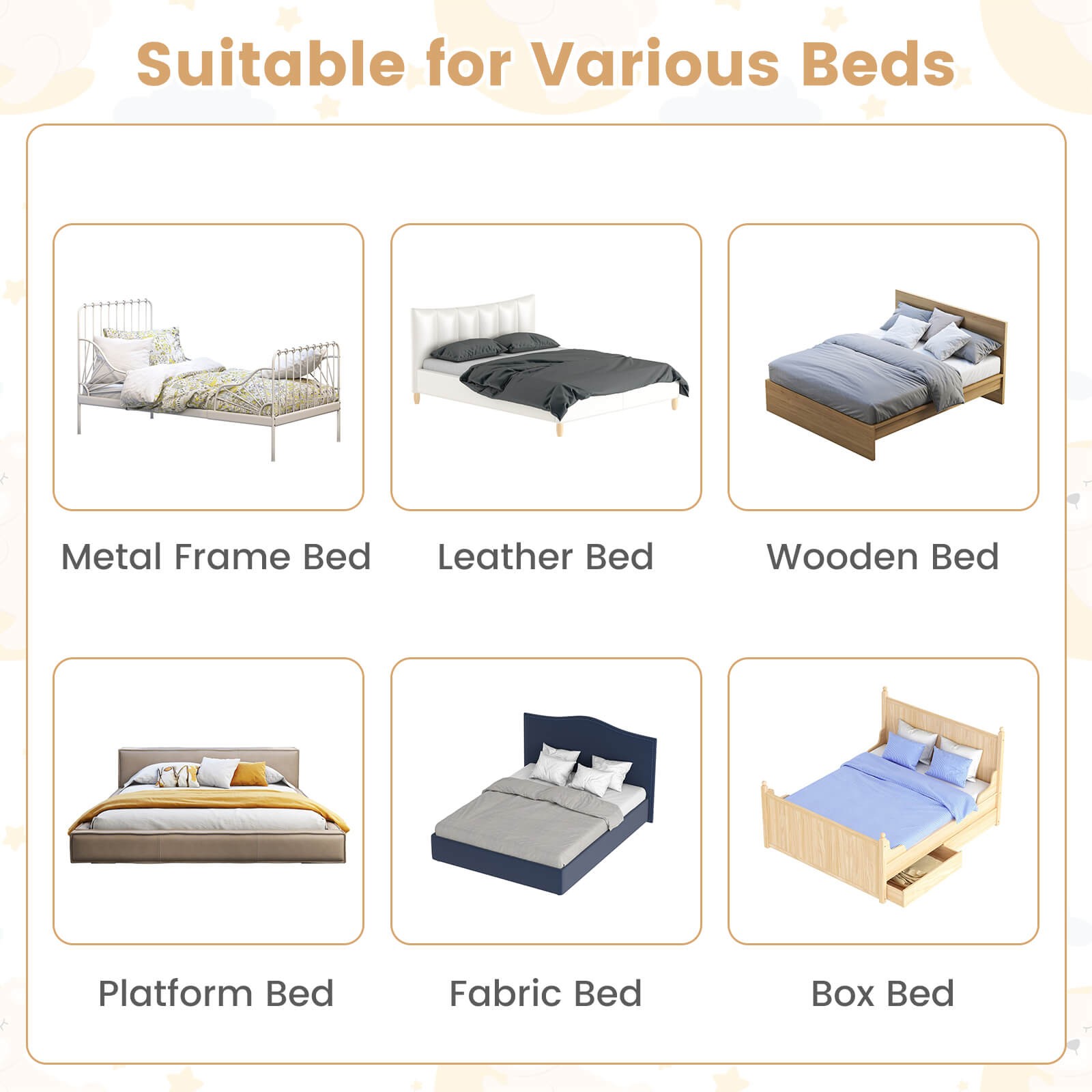 Set Includes: 1 x Bed Rail, 1 x Y-shaped Adjustable Strap, 1 x Instruction