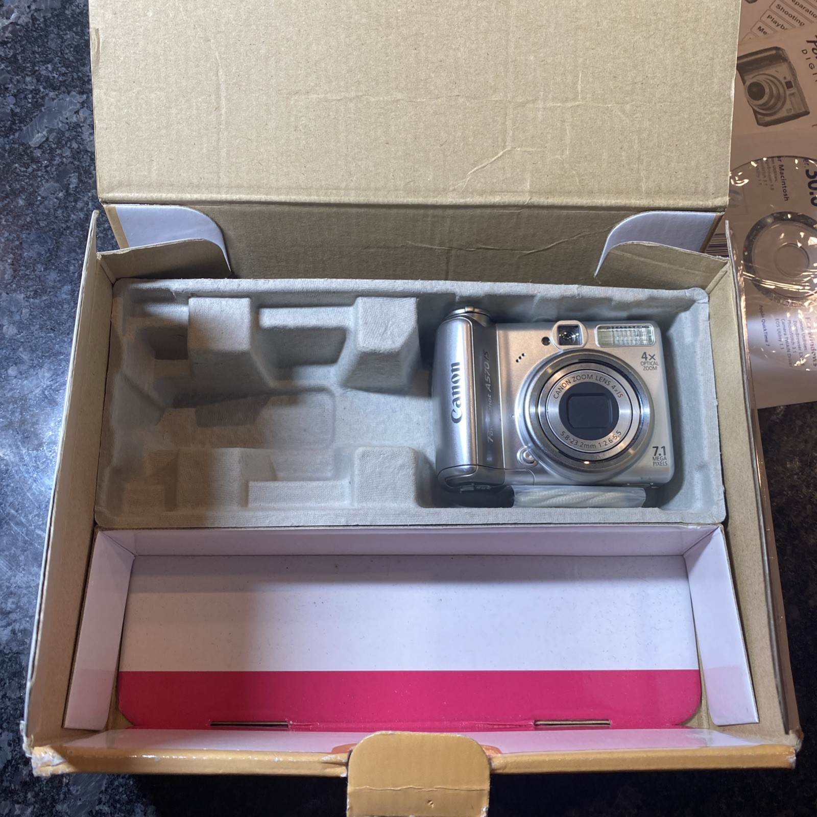 Canon PowerShot A 570 IS AiAF 7.1MP 4x Digital Camera PC1225 Silver w/ Box Works