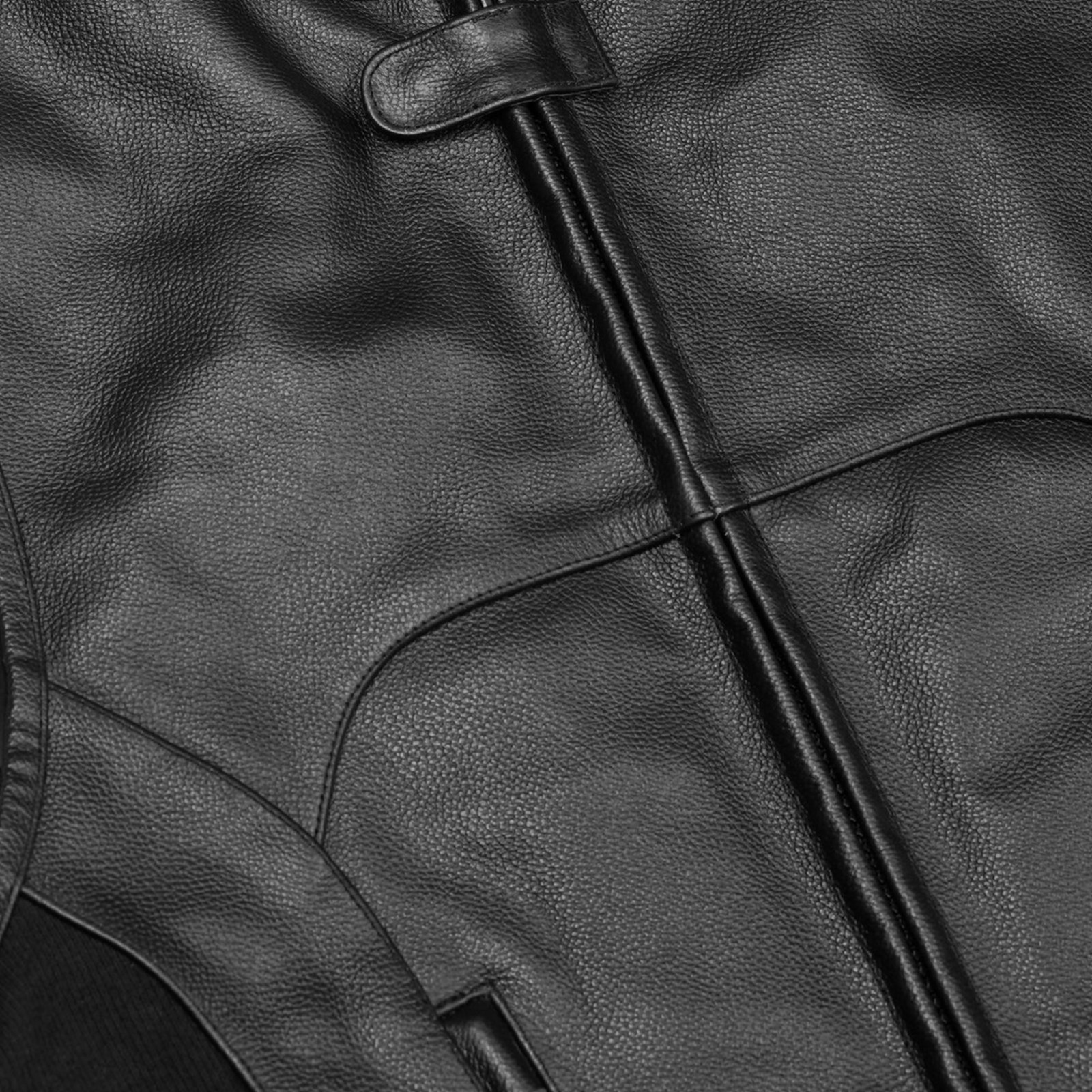 Men's Black Genuine Leather Motorcycle Leather Vest Multi Pockets Biker Style