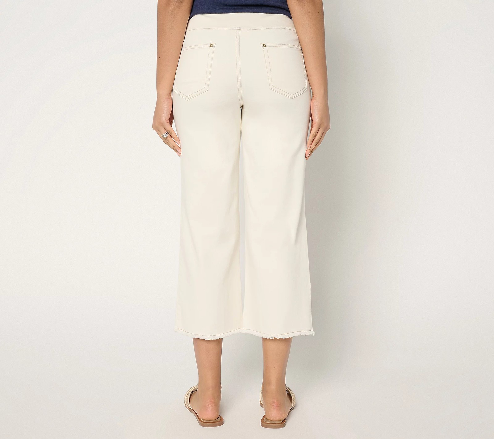 Belle by Kim Gravel Regular TripleLuxe Twill Wide Leg Crop Pants with Fray Seed