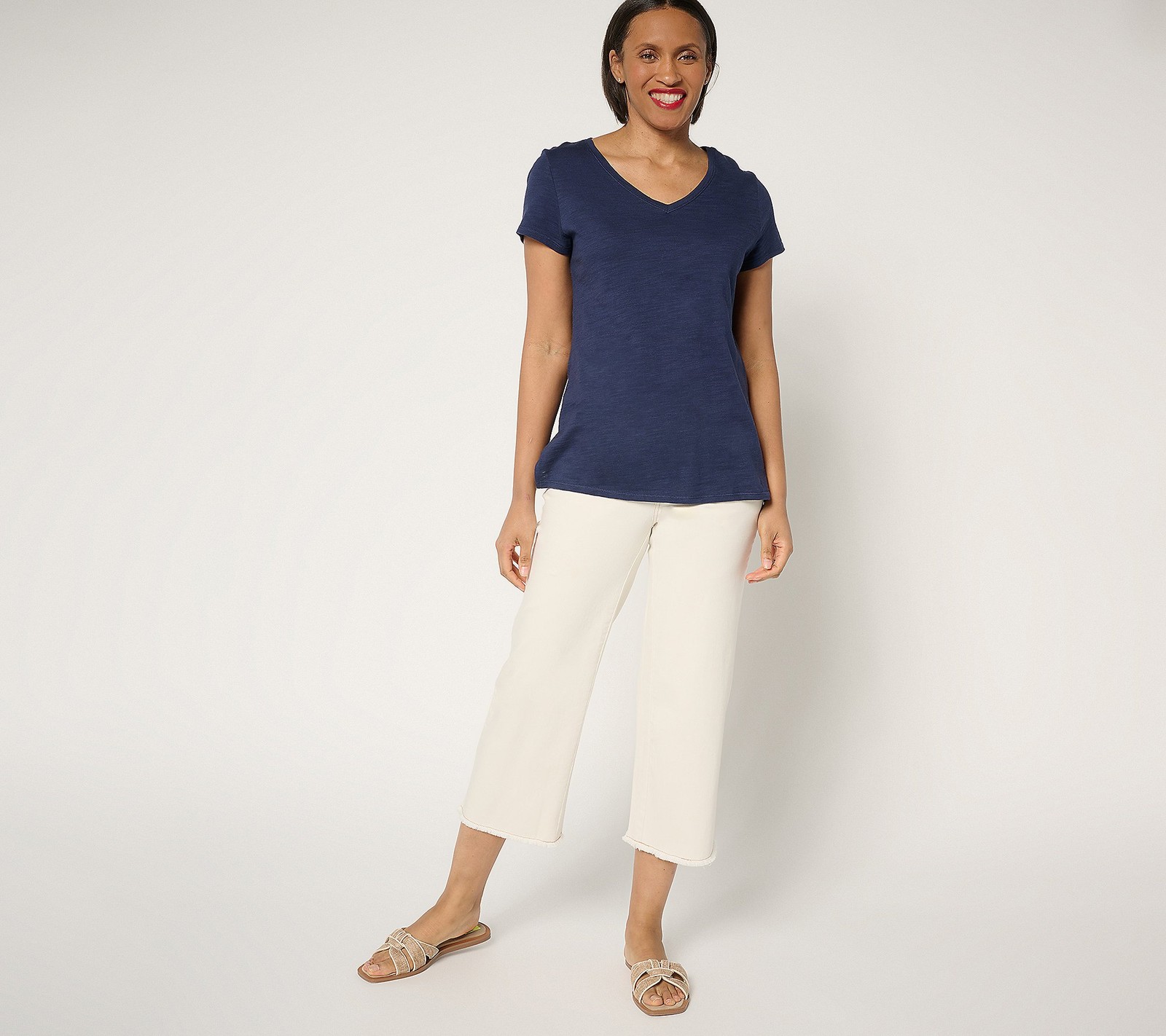 как выглядит Belle by Kim Gravel Regular TripleLuxe Twill Wide Leg Crop Pants with Fray Seed фото