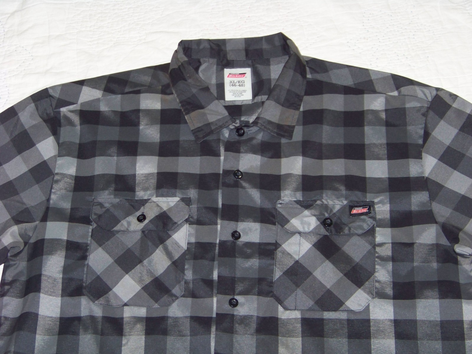 Men's Dickies Button Front SS Polyester Shirt - XL 46-48 Black/Gray