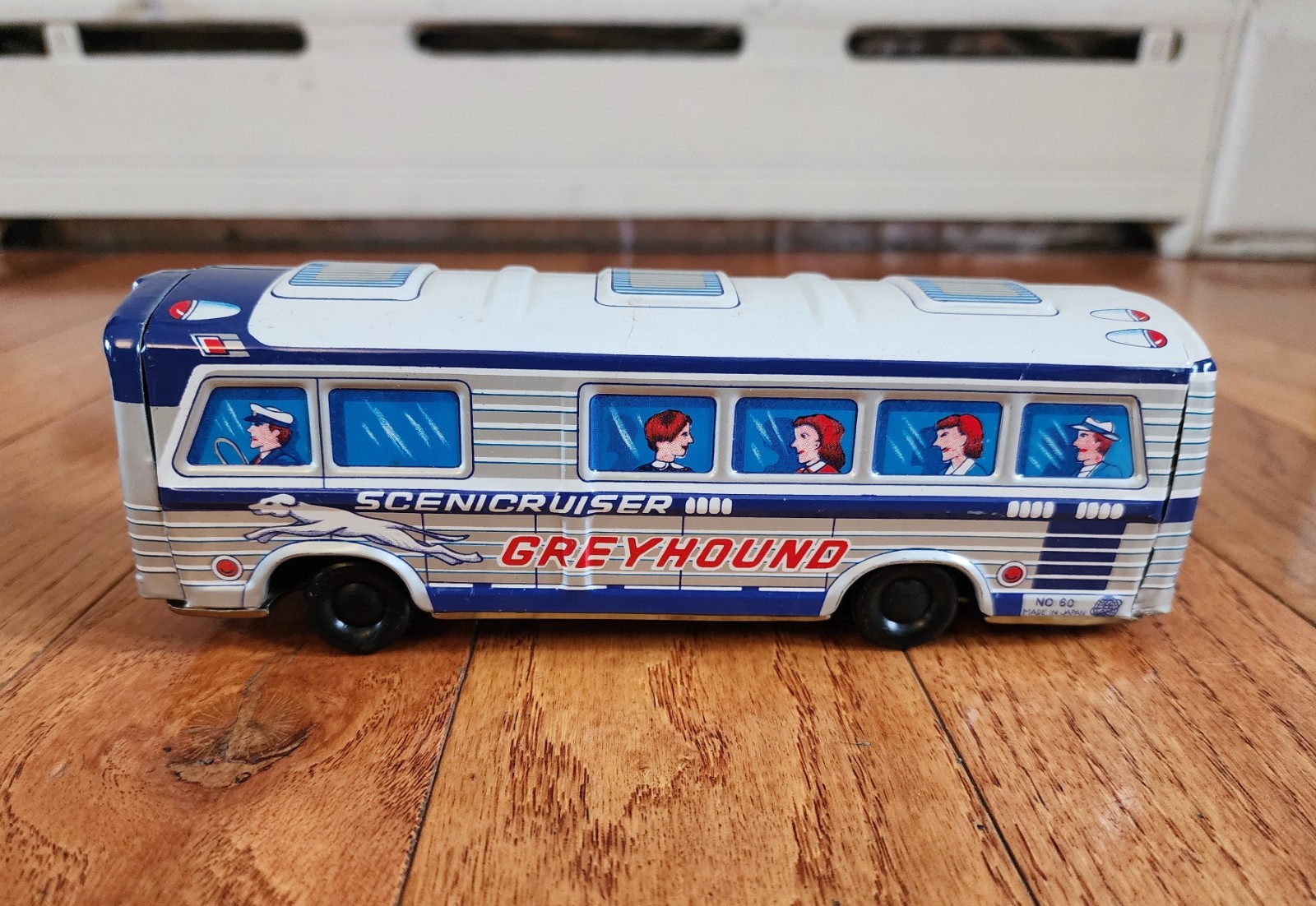 GREYHOUND SCENICRUISER BUS GM PD-4501 TIN LITHO FRICTION TOY JAPAN NO. 60