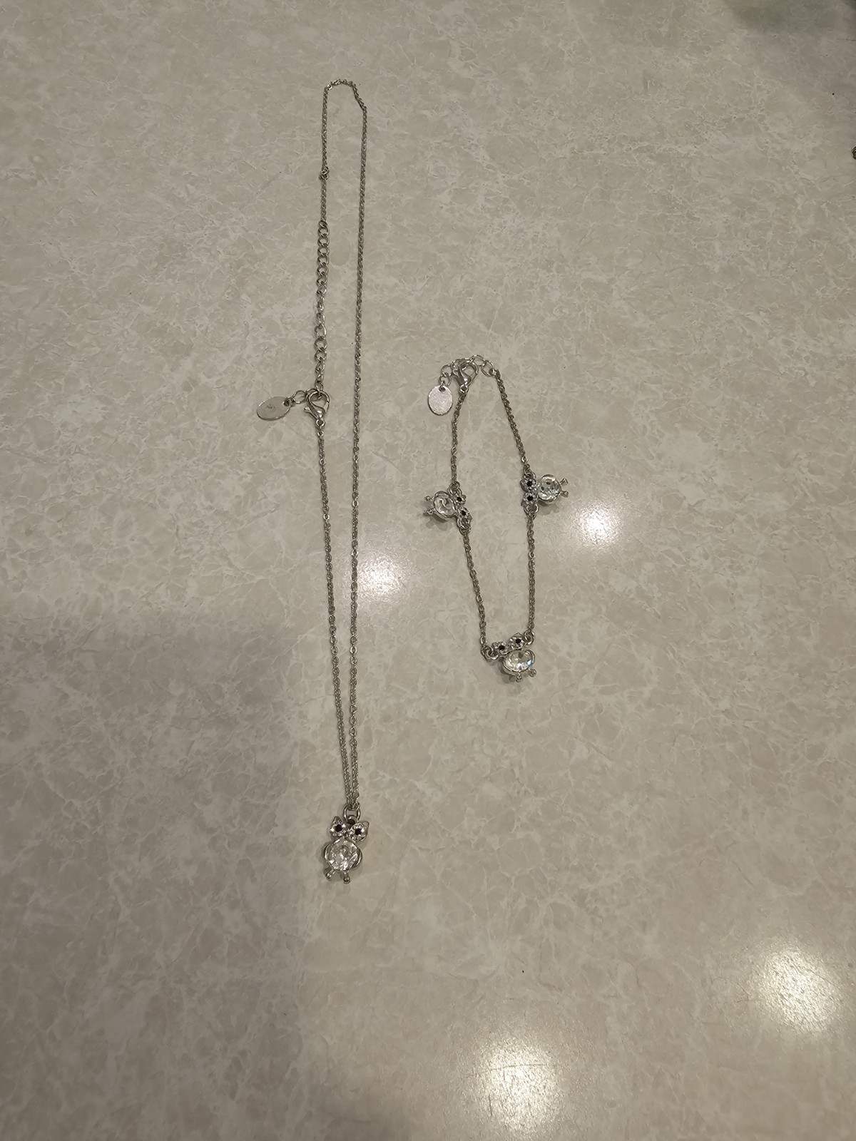 как выглядит Girls Owl Necklace and Bracelet Set Silver Tone фото