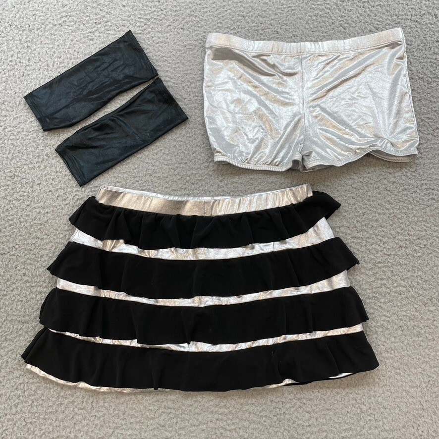 как выглядит Womens Medium MA Dance Skirt Shorts Arm Bands Silver Black Ruffle Retro 80s Y2K фото