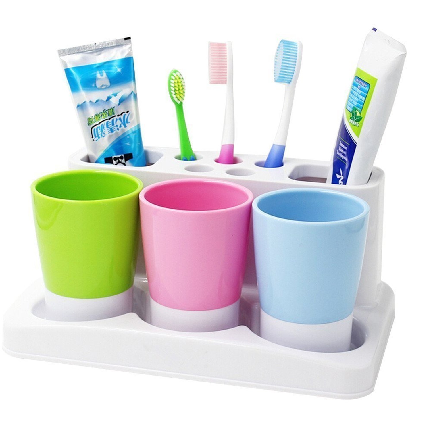 Toothbrush Holder 5 Hole Toothpaste Stand Bathroom Organizer with 3 Rinse Cup...